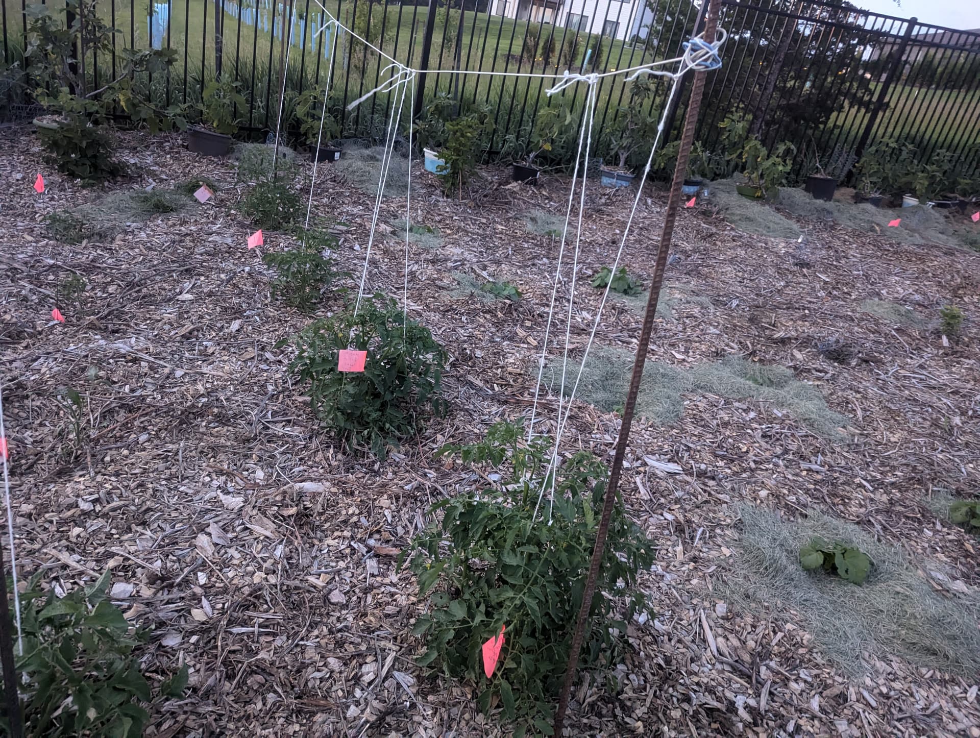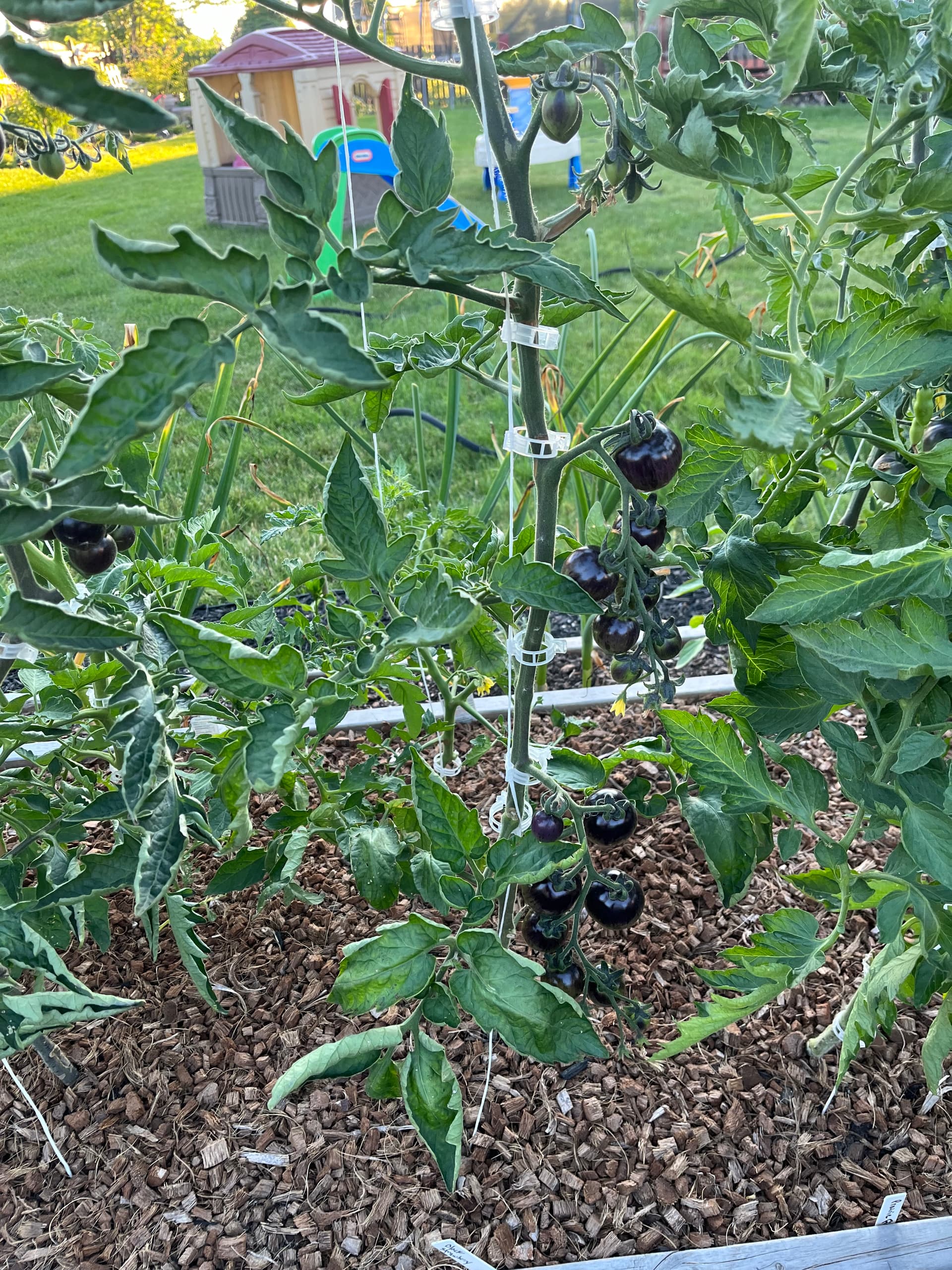 Trying this vertical growing with string for the first time this year to maximize space and put in some extra varieties with the very minimal space I have with everything else. Everything is growing well so far but I’m finding it to be a tedious task with regular pruning and clipping. Next year I’ll probably give them a lot more space between plants. I put them a foot apart in this particular bed.