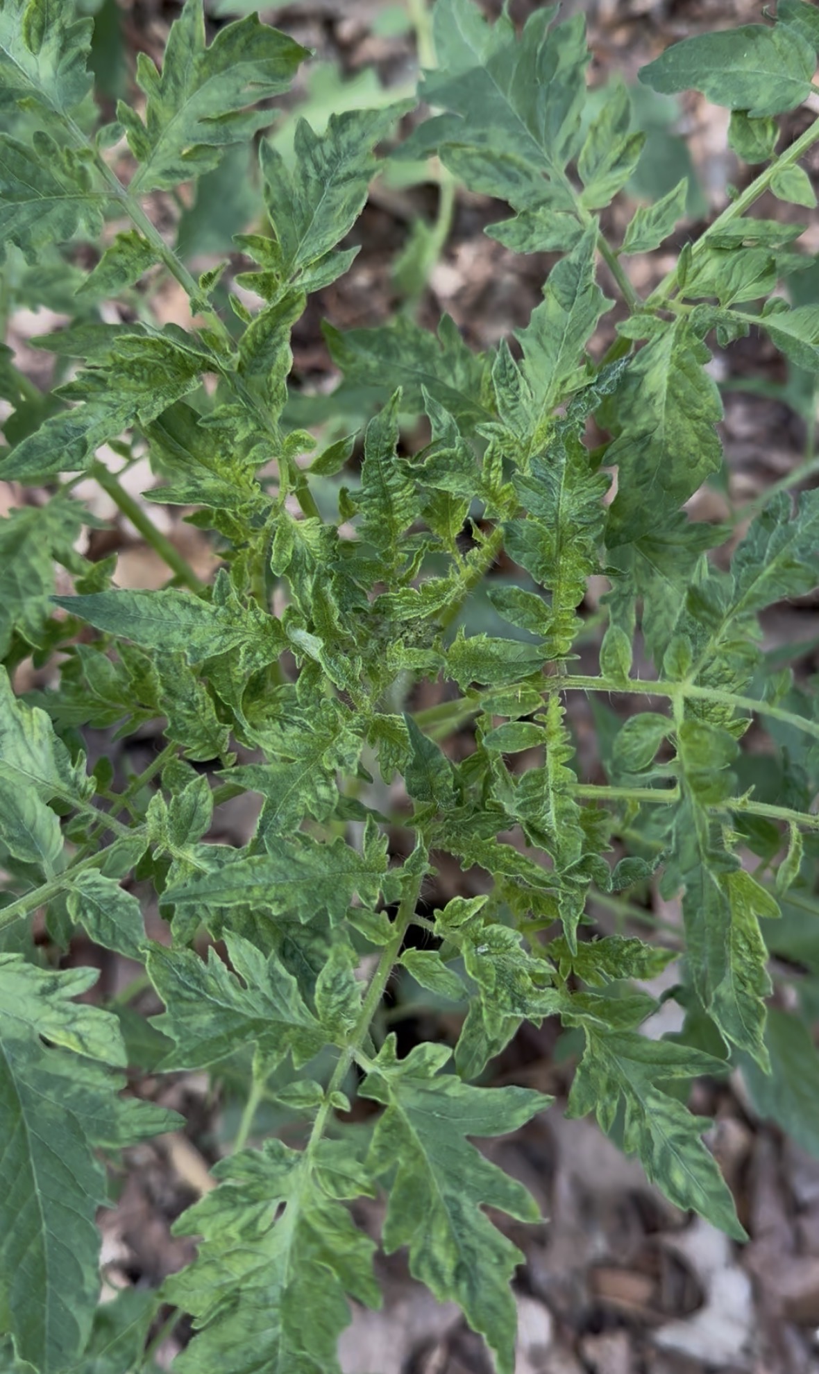 Certainly not any herbicide from me. Possible it’s drift from a neighbor but TYLCV was my suspicion. Either that or one of the mosaic viruses. Looks like tomato season is over for me before it starts. Unreal.