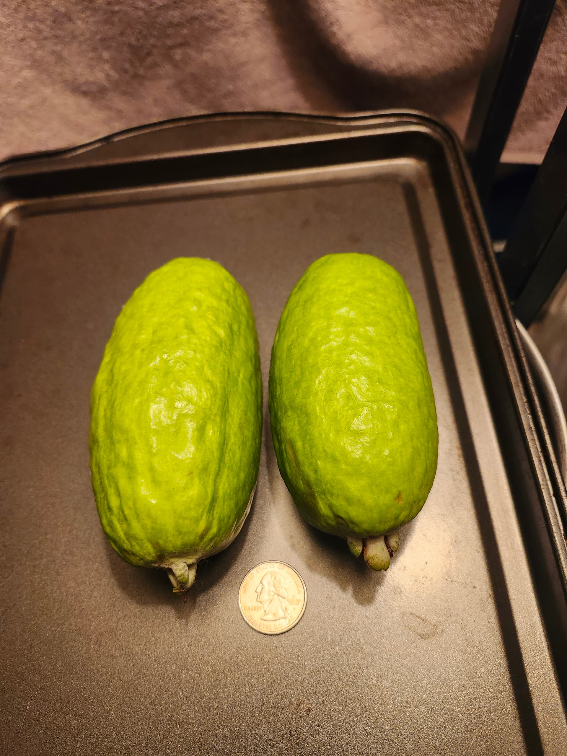 I really didn’t even think feijoa could get this large (seen next to a US quarter):