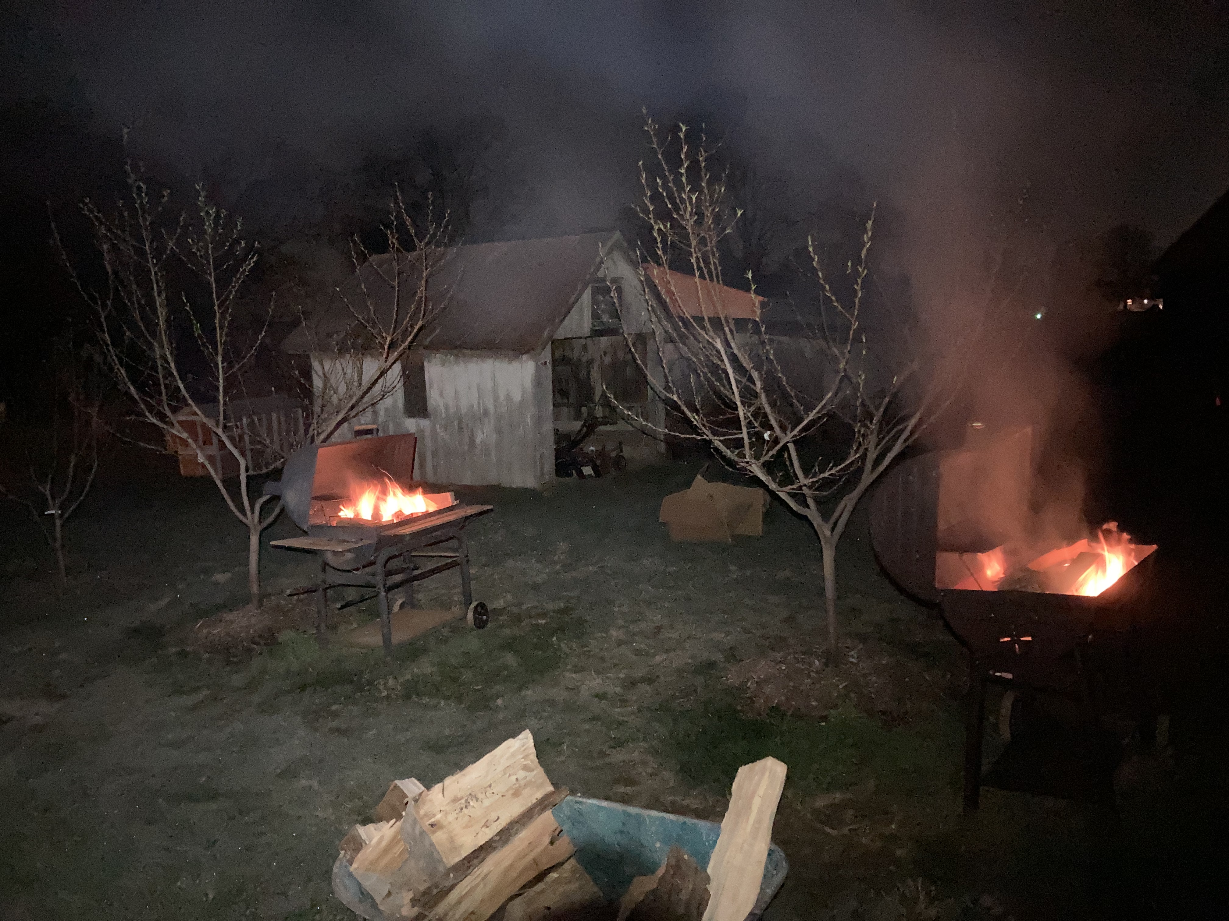 Both wood fired grills kept both peach trees frost free. Careful placement and 30-45 minute monitoring was needed to ensure safety and success for all of them. The propane stuff stayed in place. The grills did need movement based on heat and smoke (max heat without damage).