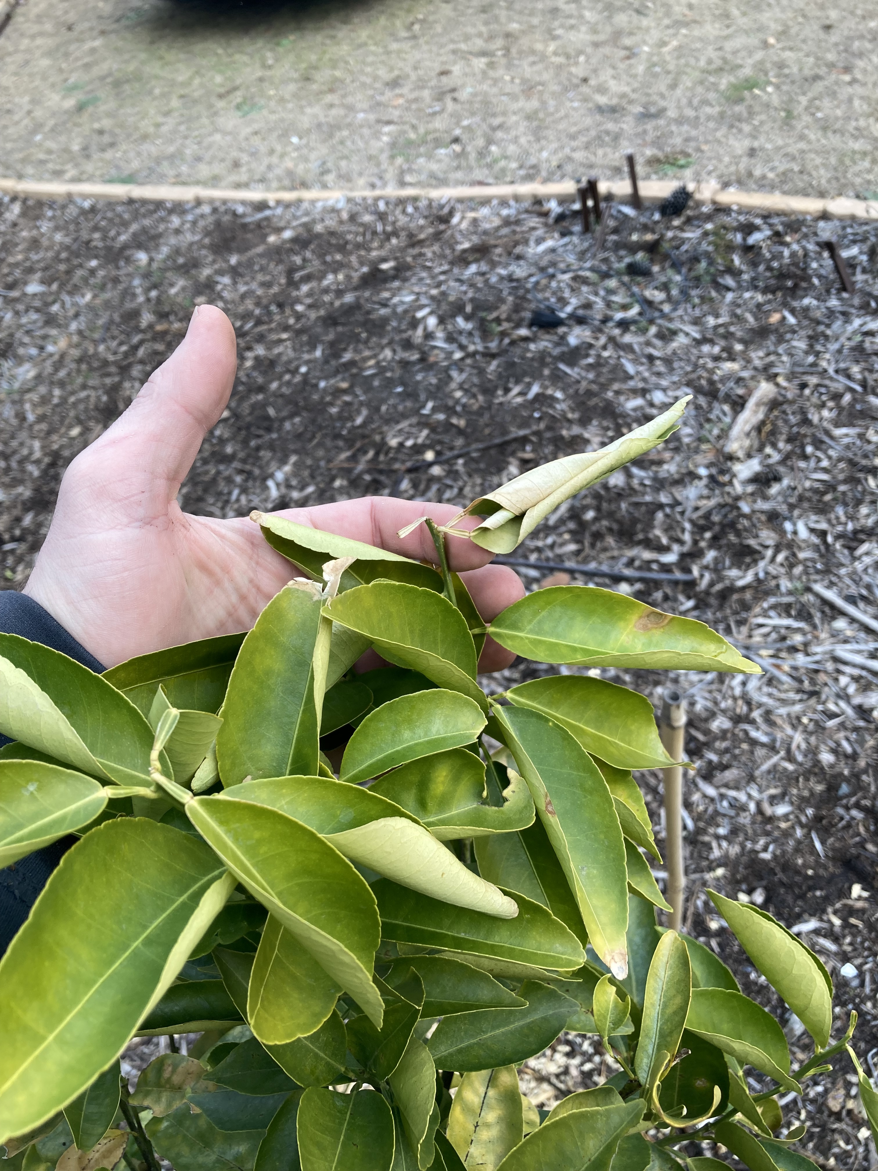 Only one tip damaged in total of my 17 in ground citrus, kinda shocked my Kishu and Clementine completely unprotected didnât get damaged as only a few months old grafts.
