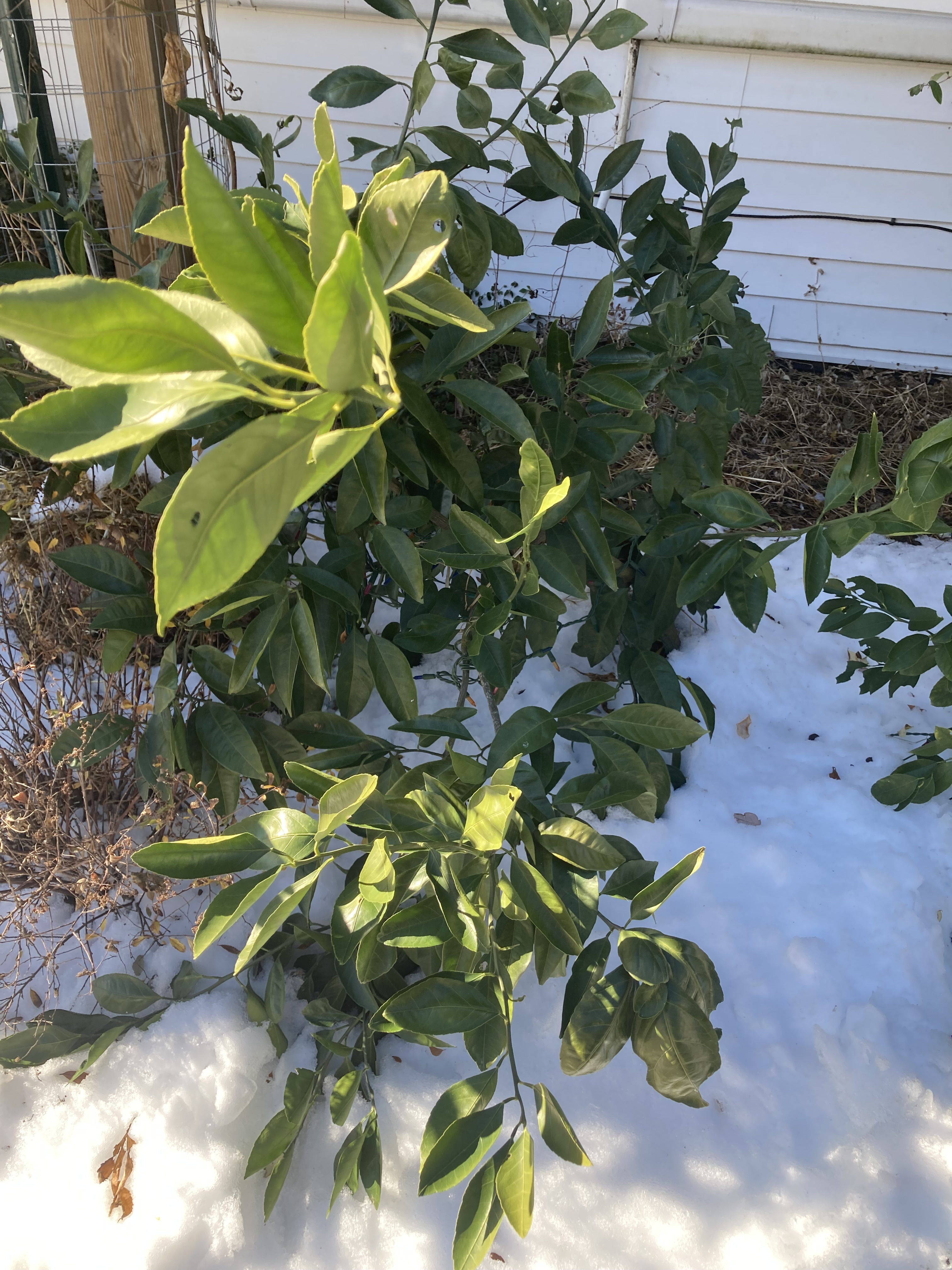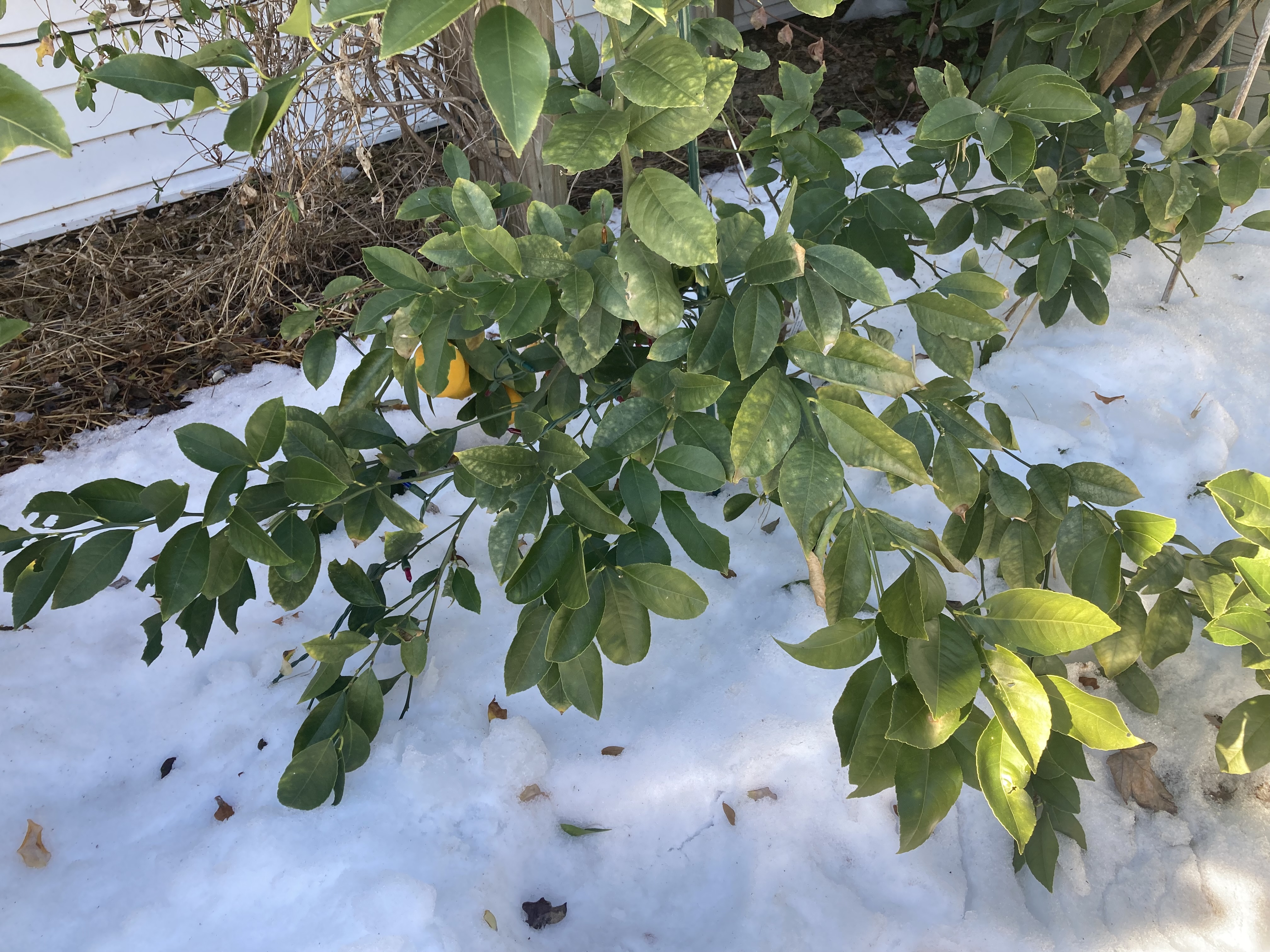 I hope they survive this cold and snow. This looks brutal for citrus!