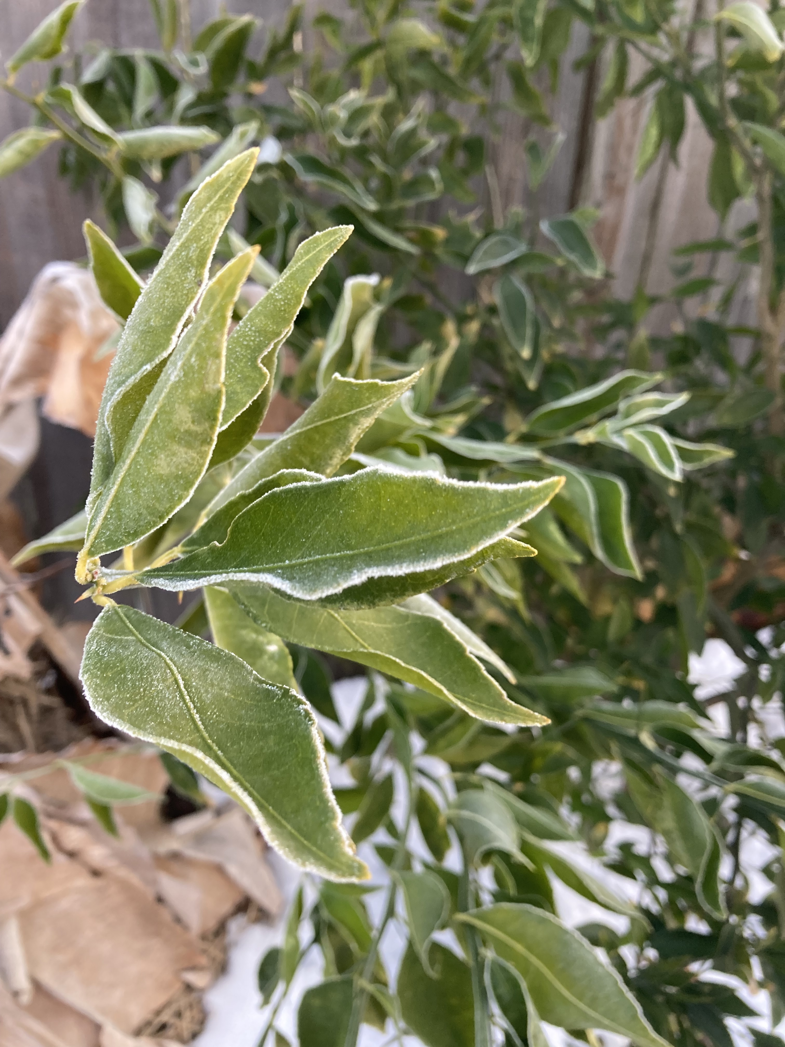 Really thickest frost in a couple years here. Makes sense from all the moisture. We will see how the âArctic frostâ handles it. The Owari and meyer (unprotected but are planted with the deck above them) seem happy enough. So far no defoliation.