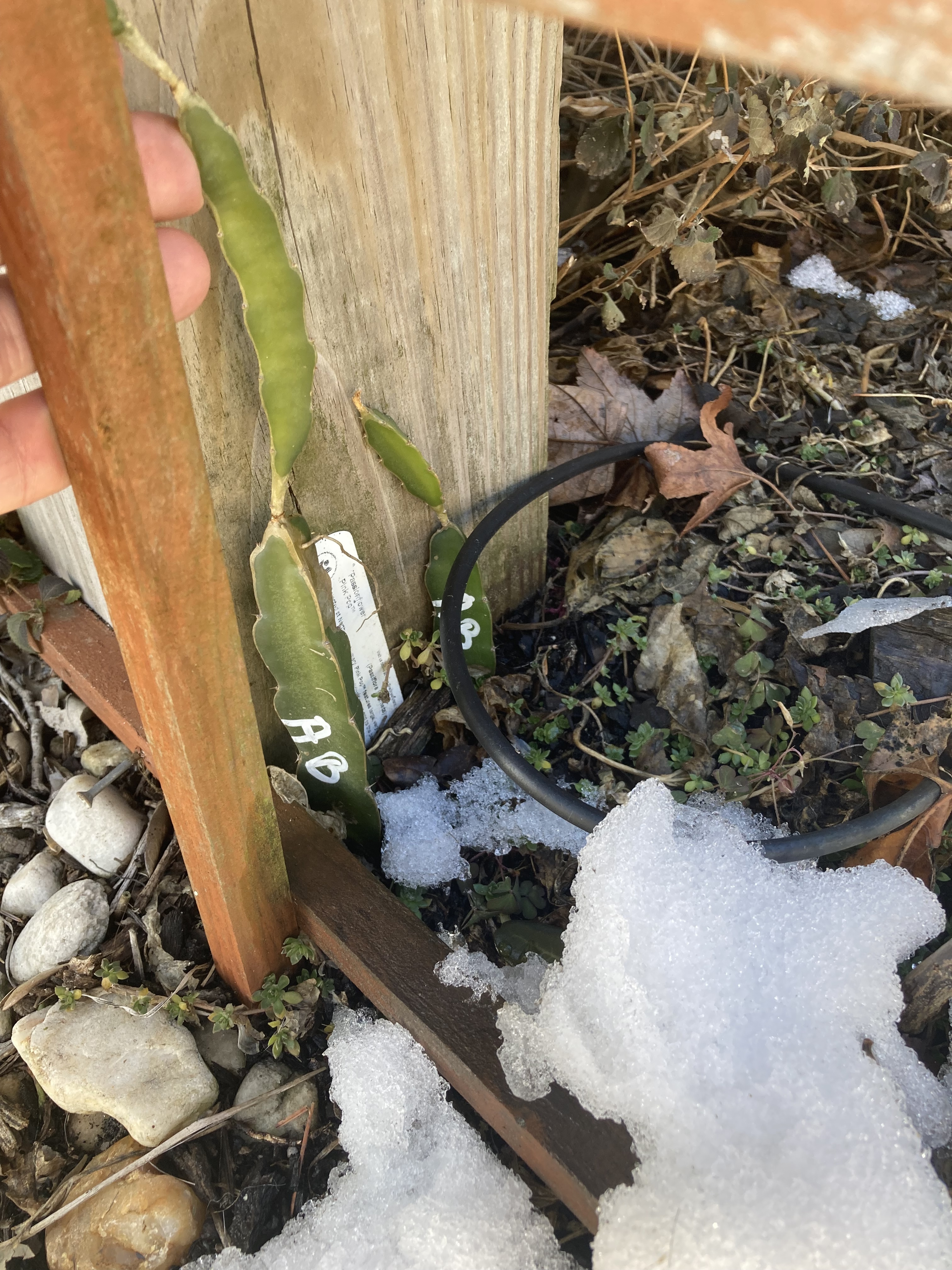 One of @a_Vivaldi guava seedlings first day I could get a photo because the snow melted enough. It has zero damage