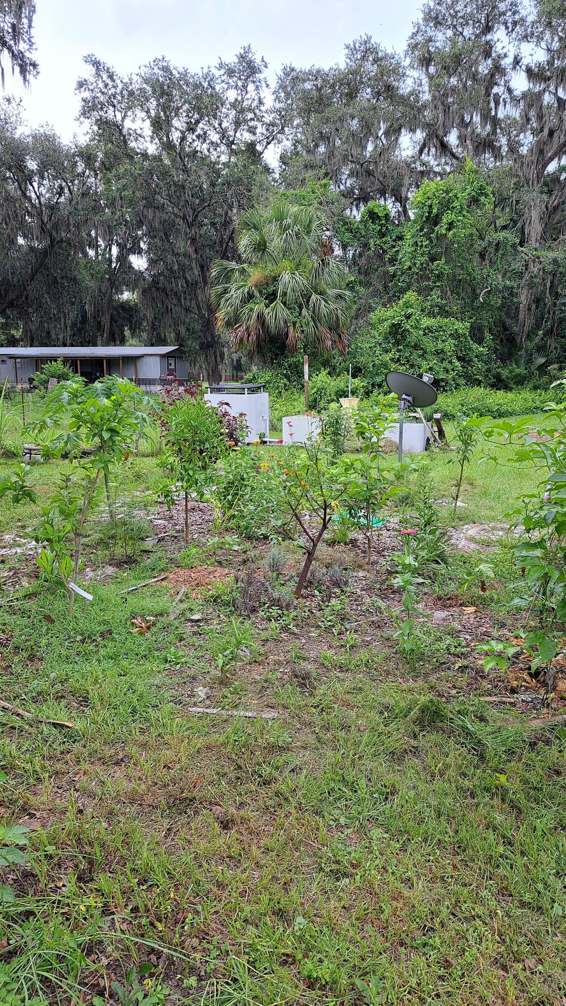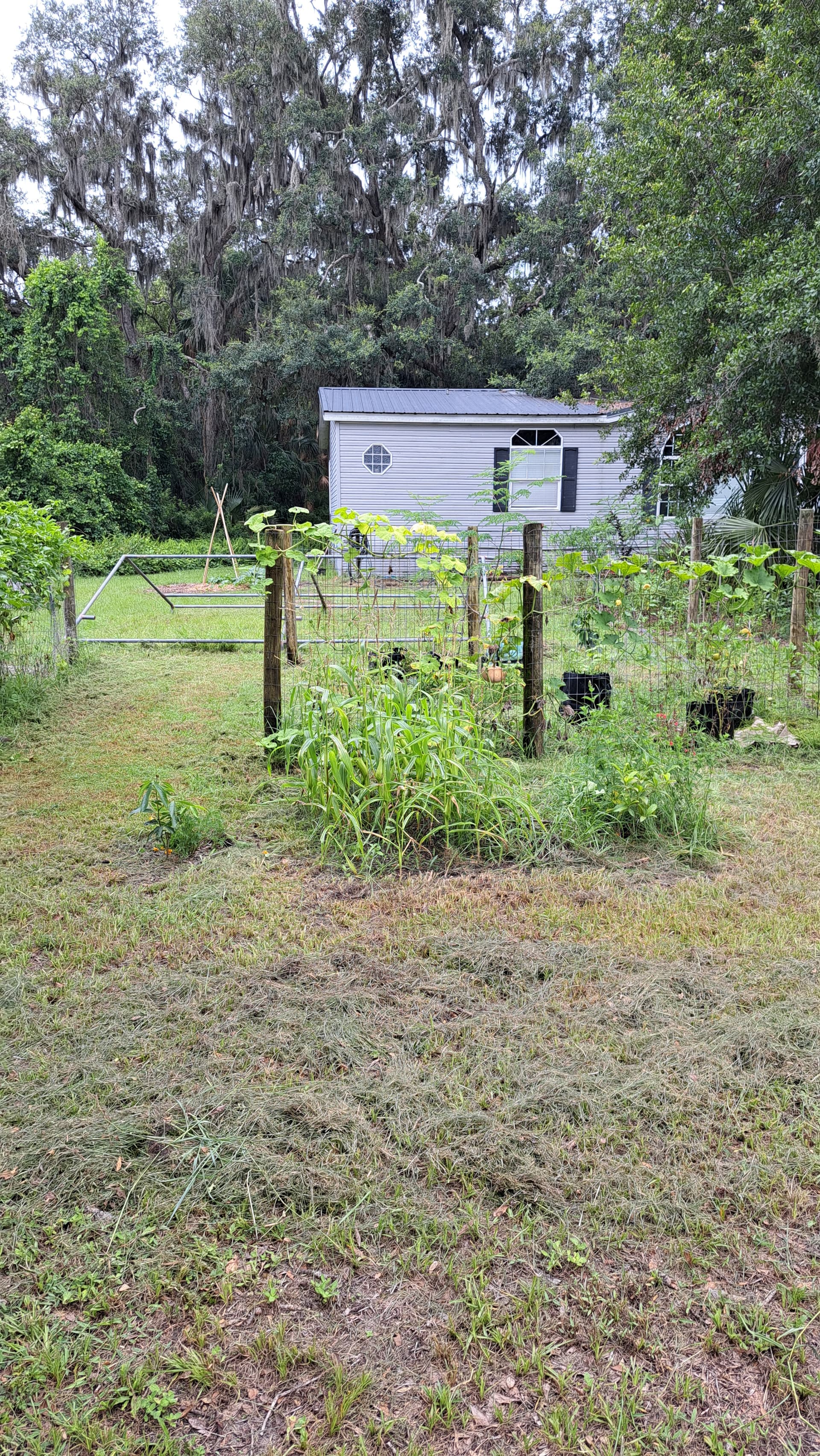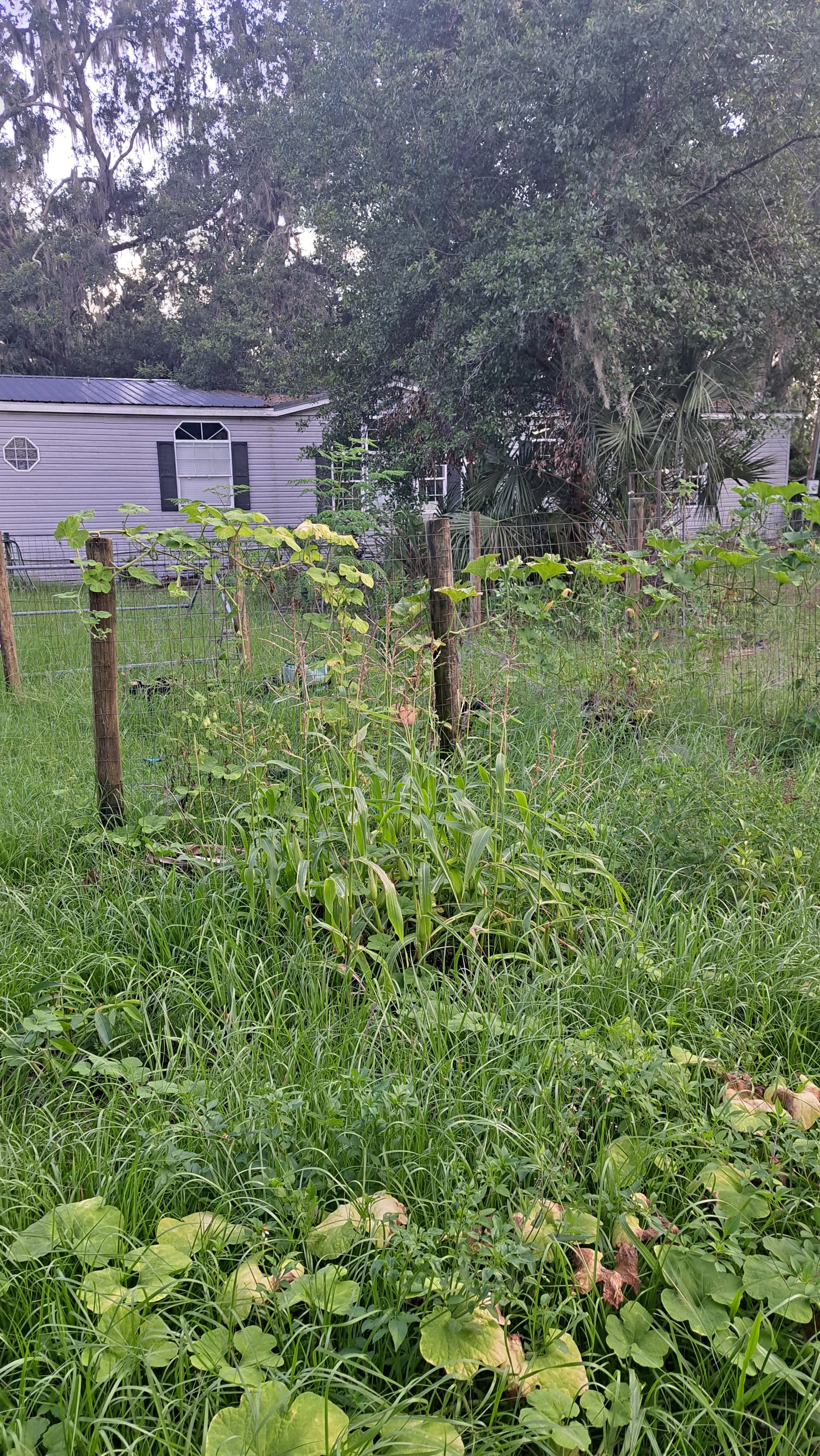 Got alot done in a day and a half. Mostly mowing and cutting. A little pruning, spicifically the pigeon peas, the fig-leaf gourd and some tomatoes. Apperently fig-leaf gourd is day-light/heat sensative and does not flower in the summer, so I cut about 10 feet off. Front yard is farther along then the back yard. Still got a fair bit of pruning left to do, some beans and tomato harvests, and some fertilizing.