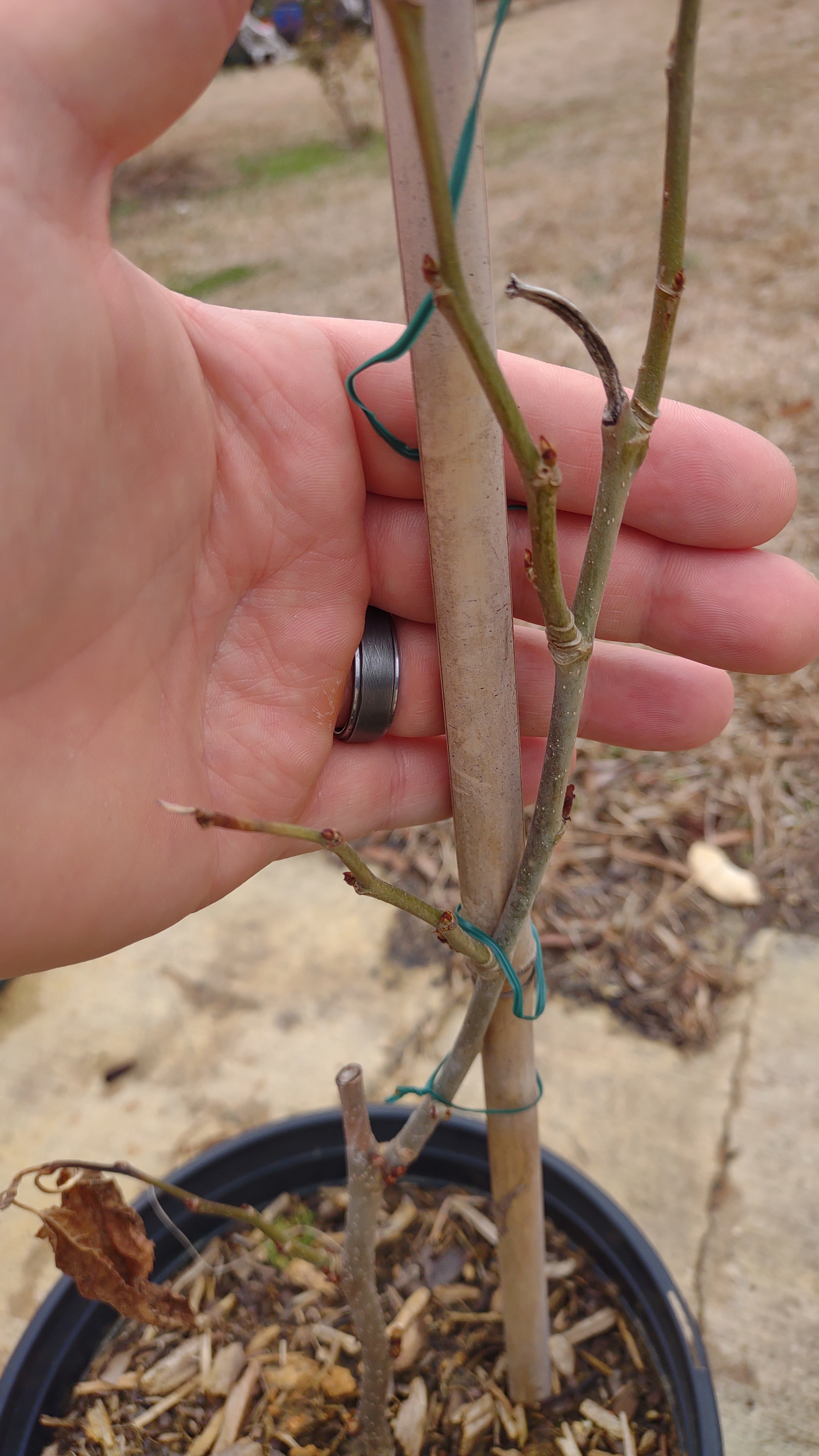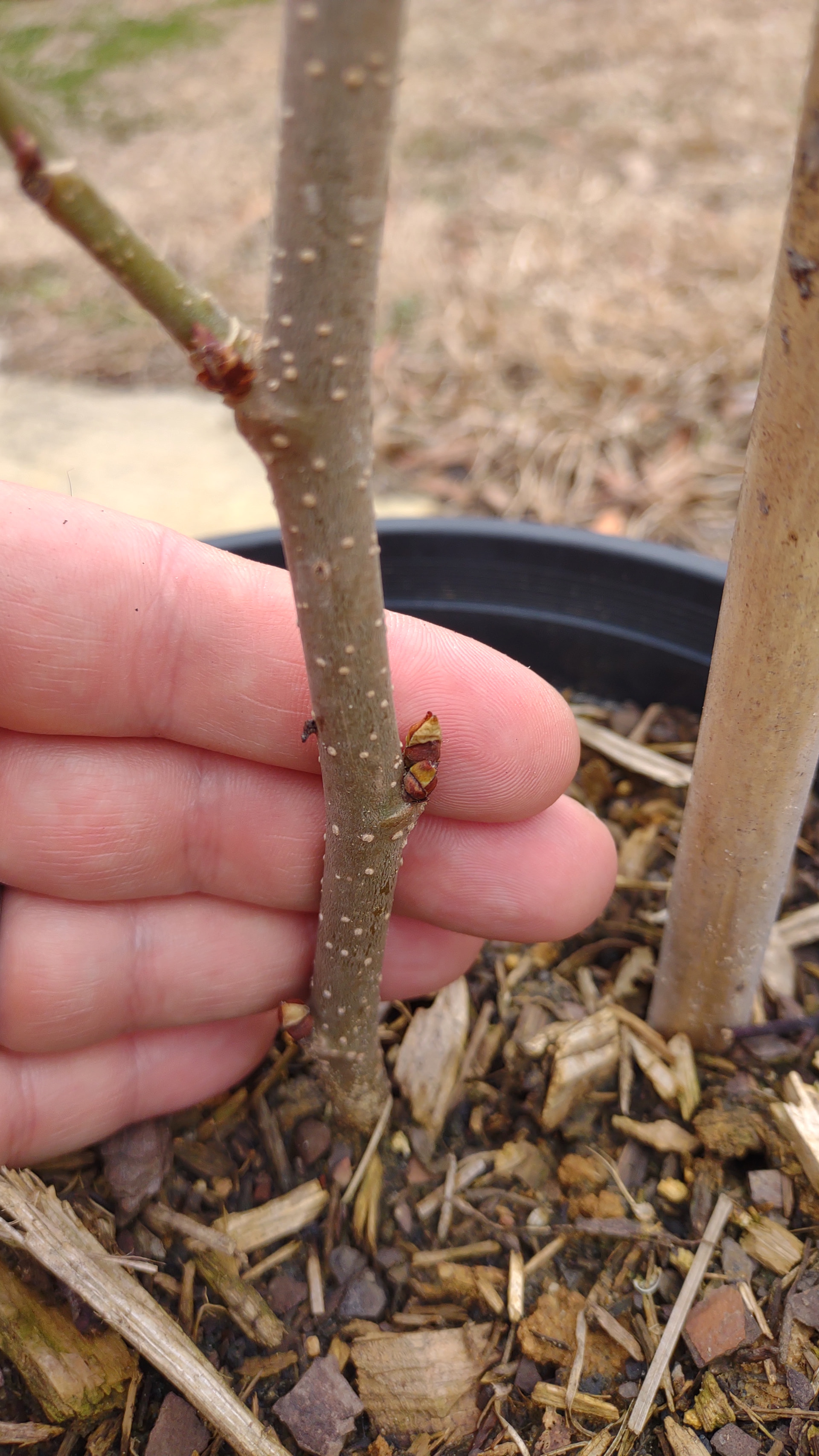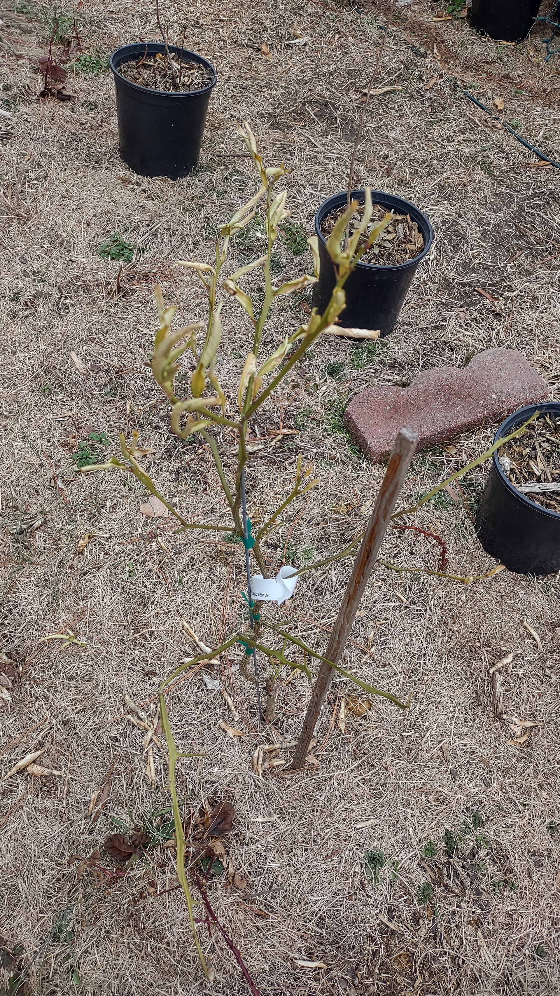 I left one Siam Jumbo completely unprotected and in a pot and, honestly, it looks alright. Props to Siam Jumbo, it’s pretty hardy. Just buds out way, way too soon. The unprotected one at least isn’t budding out as much yet like the protected ones are, so that’s worth remembering.