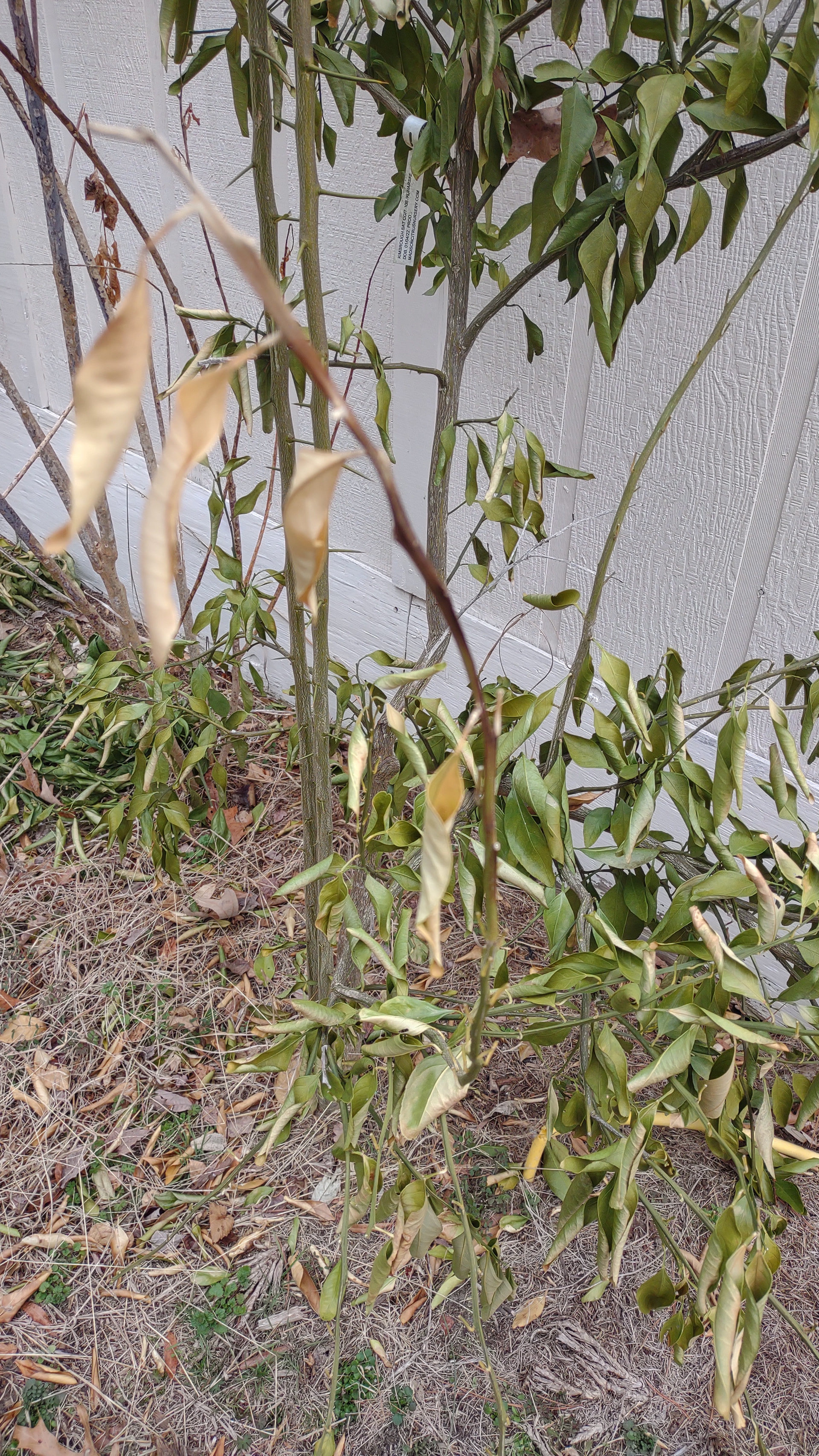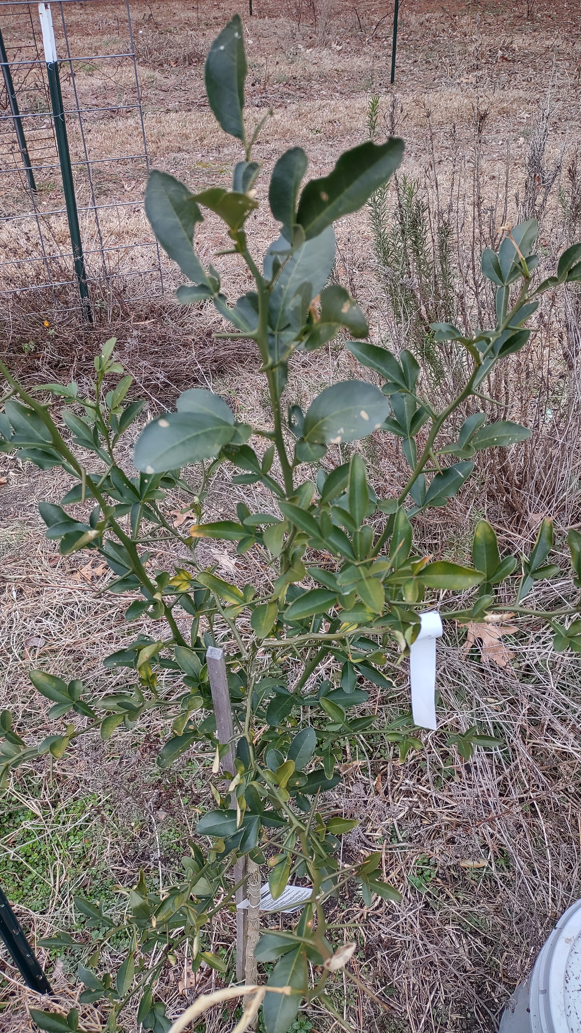 My covered and protected citrus look fine, even my pumelo. Funny enough, a Dunstan seedling right next to the pumelo is almost completely leafless. I’m guessing it’s also partially deciduous, which is odd because I’m pretty sure it’s Dunstan x ClemYuz, which I wouldn’t expect to be deciduous. Then again, my ClemYuz and Yuzu and Kabosu all dropped most of their leaves, so…
