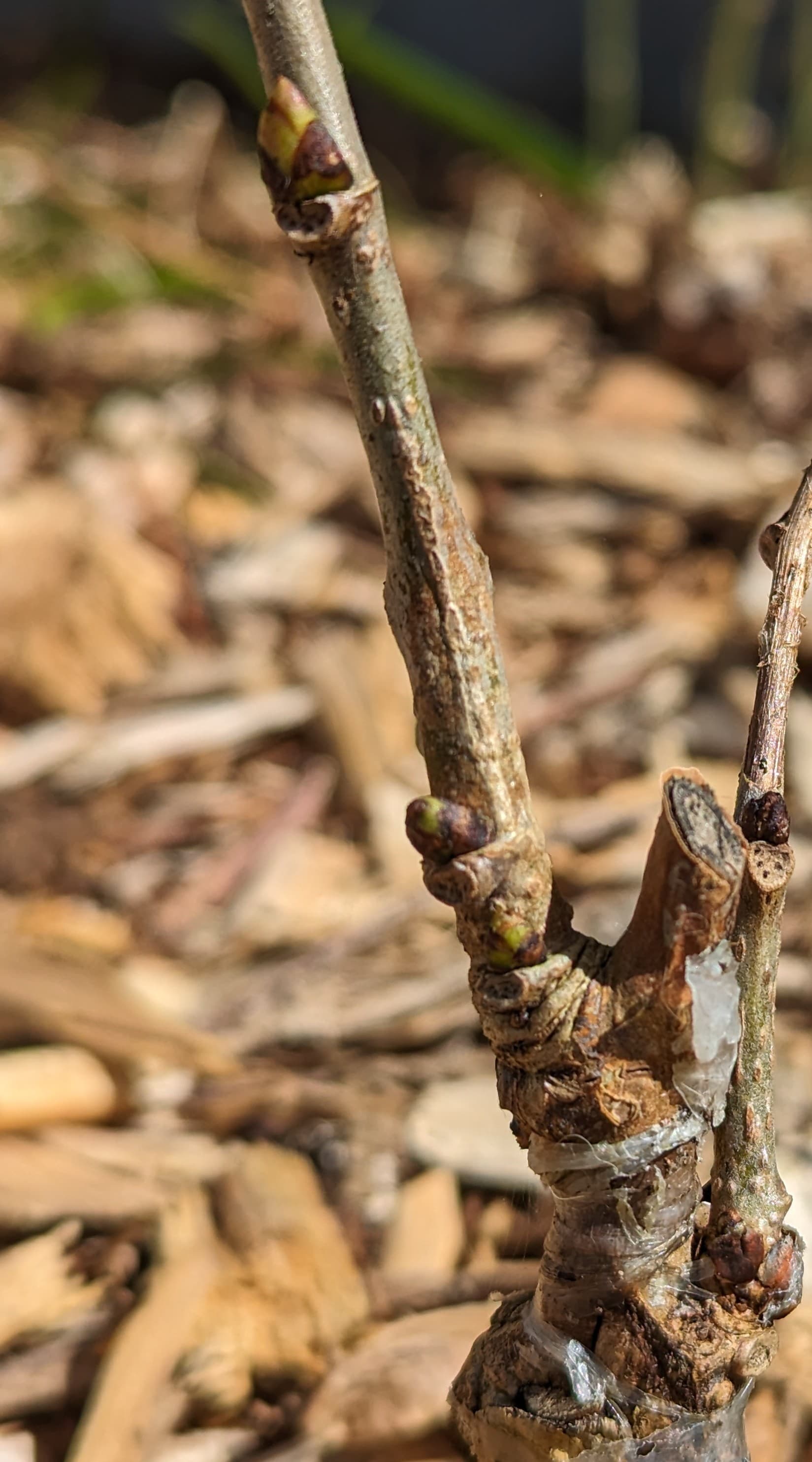 This was a bud graft last year, not a new graft. These buds were on the new growth from last season, not a scion. I’m sure it’ll be fine, I just may need to pinch off rootstock buds to force it to focus on the graft.