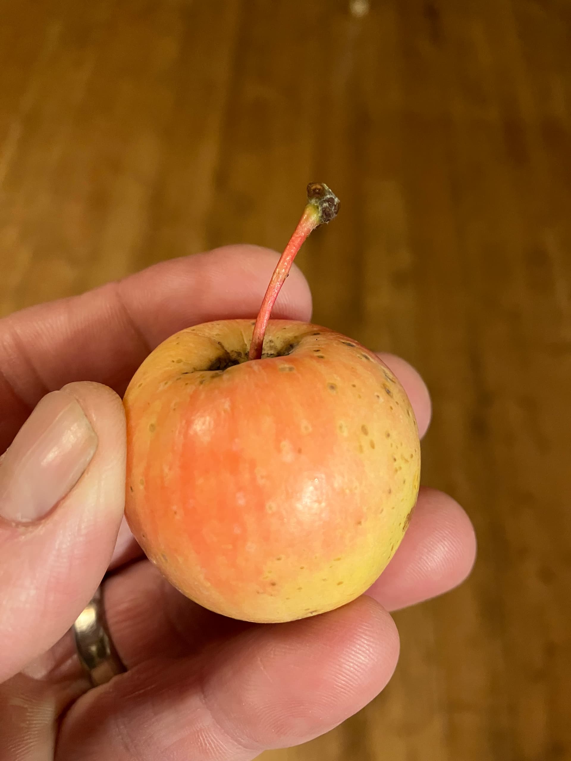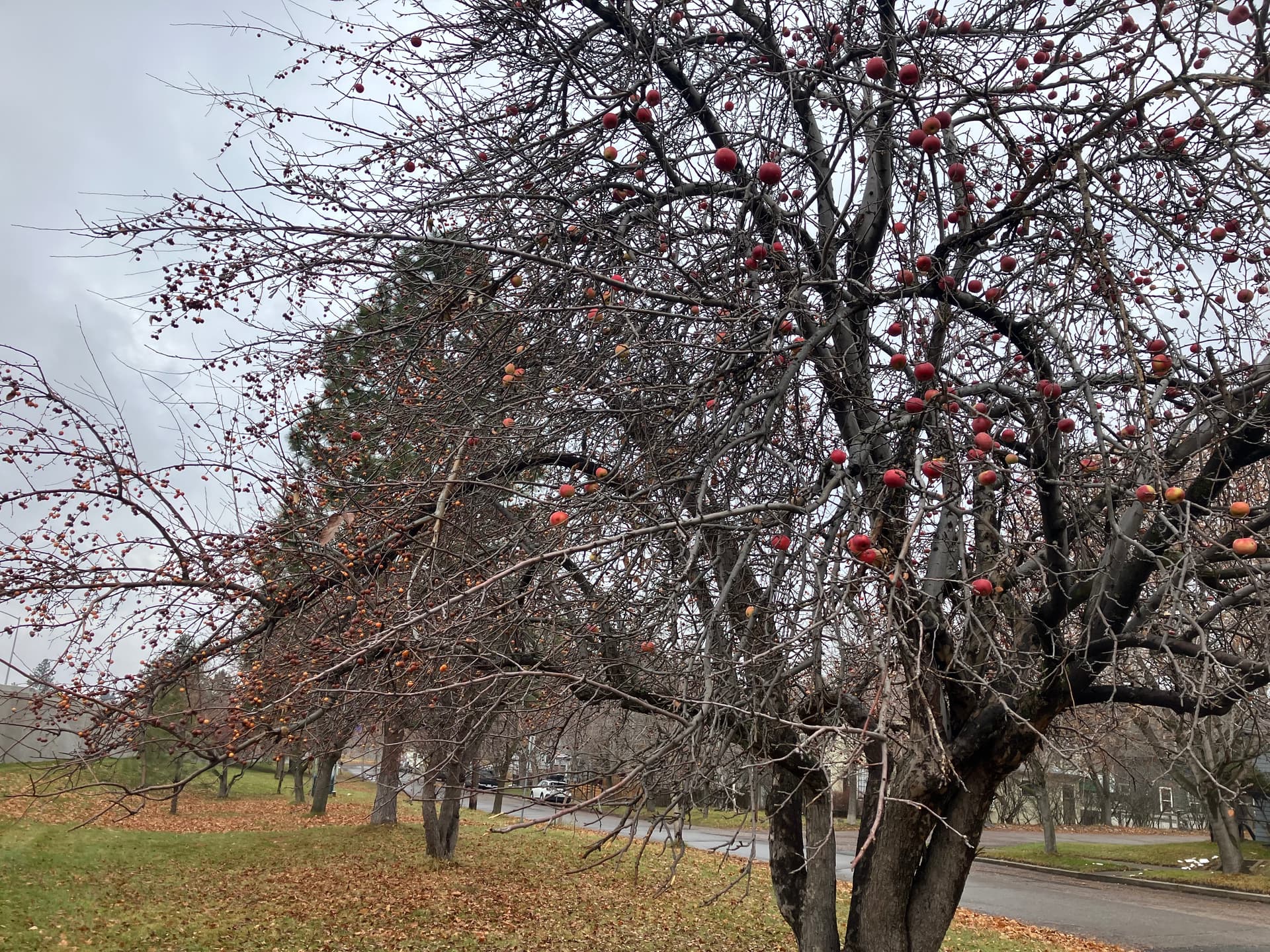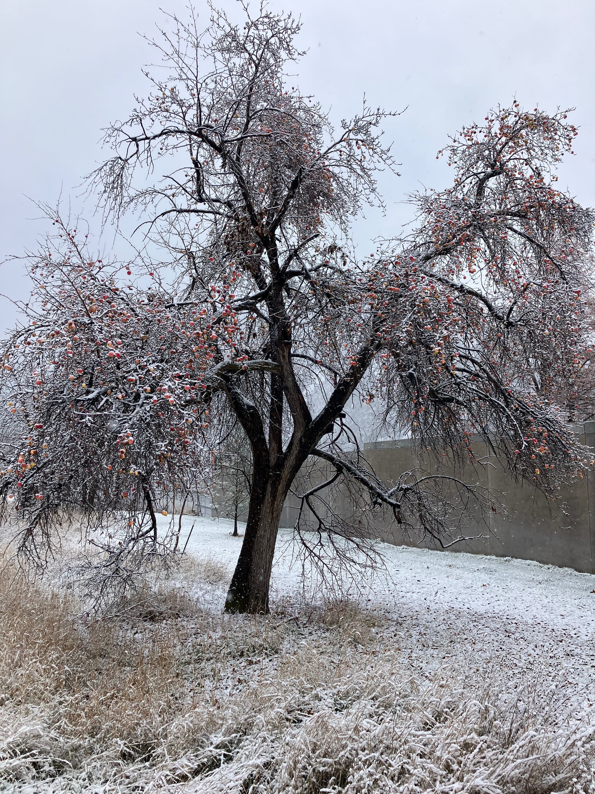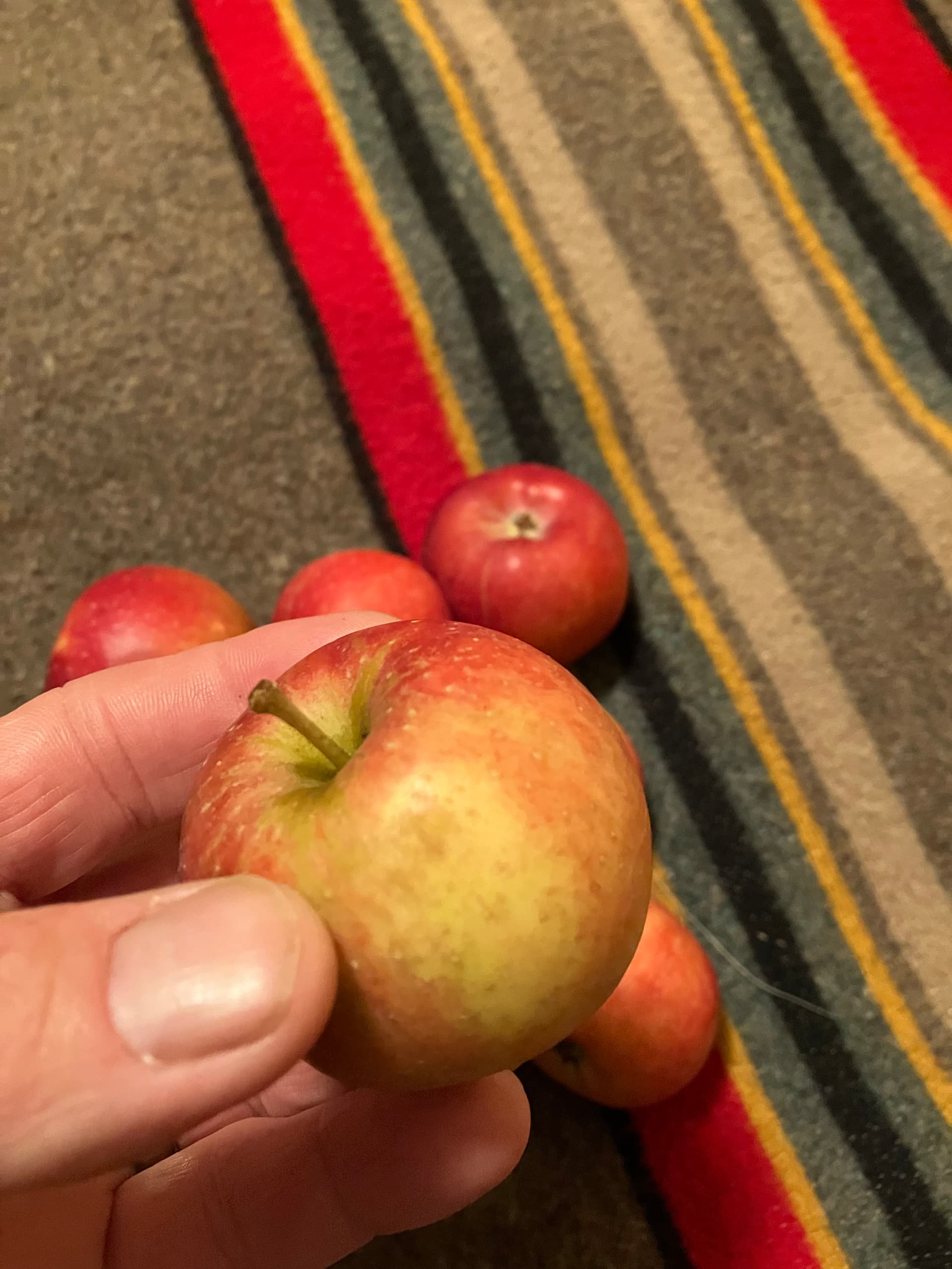 We are visiting my parents in Missoula, MT for Thanksgiving, and there are some flowering crabs planted in a green strip next to the interstate. One of them had two trunks and the eastern trunk had these lunchbox size apples. We had an inch of two of snow last night and these were delicious! Clean, crisp, sweet - my dad described them as tasting like a small Honeycrisp. I will be taking some scion wood home for sure! @marknmt if you or anyone is in the Missoula area, I’m happy to share the address.