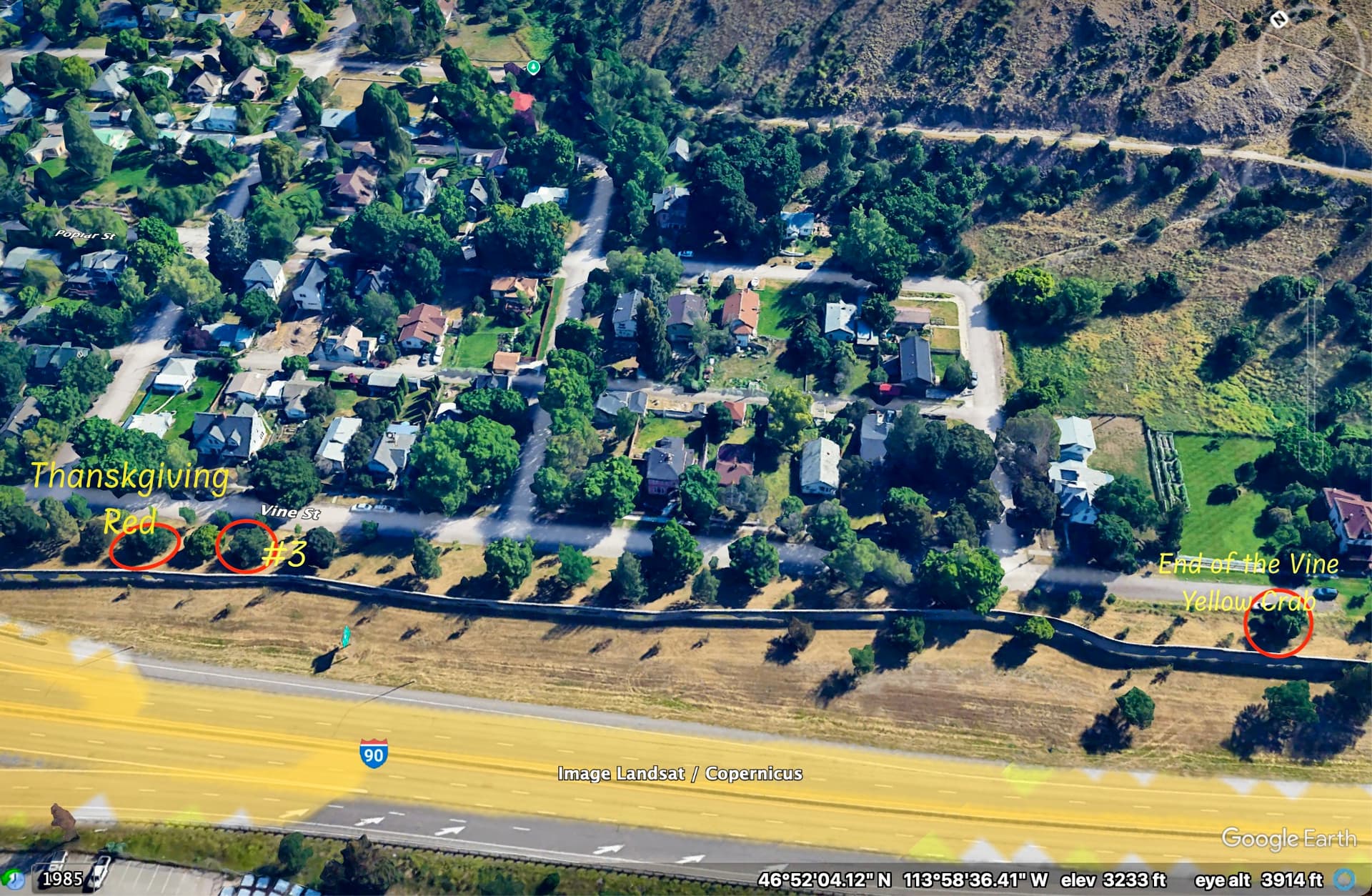 Another Rattlesnake apple is at the end of Duncan Drive by the power substation. It has a couple of trunks and the fruit are a closer to normal in size. They are a nice golden color and taste pretty good, but in my one sampling I didn’t decide I had to have them. The bear have beat the trees up pretty good, but they always put up plenty of new growth. But that’s one you might want to check out next year.