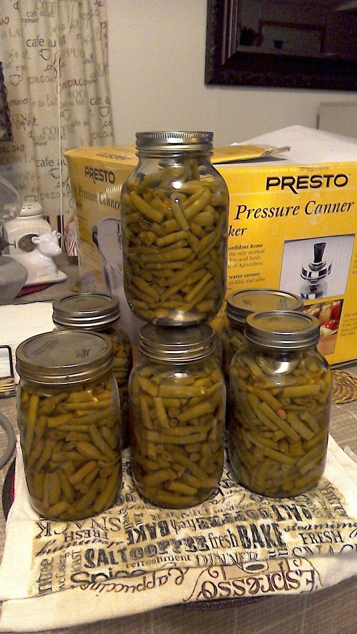 The pickles just had some dill along with the salt. The beans look a bit brown, as if they were burned, but we processed them for 25 minutes per the instructions. We’ll try a jar tomorrow to see how they taste.