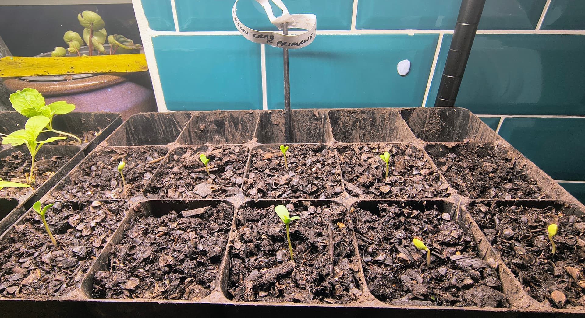 Happy set of wickson x Primrose pippin. They’re by a slightly ajar window getting a breezy draught so hopefully build some resilience to staying upright without needing a fan blowing around. Although it is chillier and the Pak choi sharing the same shelf tier as the apple seedlings are markedly smaller than the pak choi above in a warmer tier.