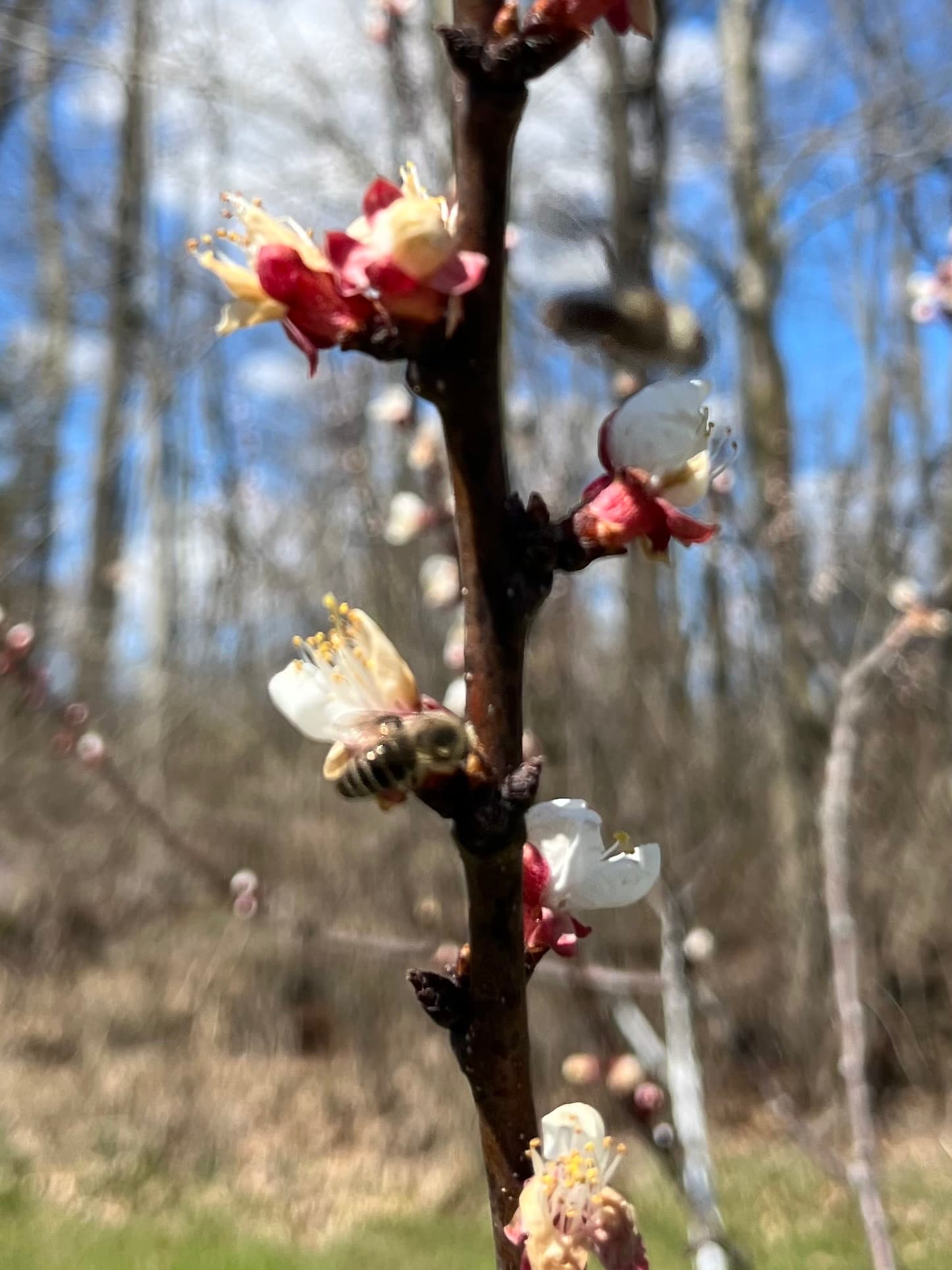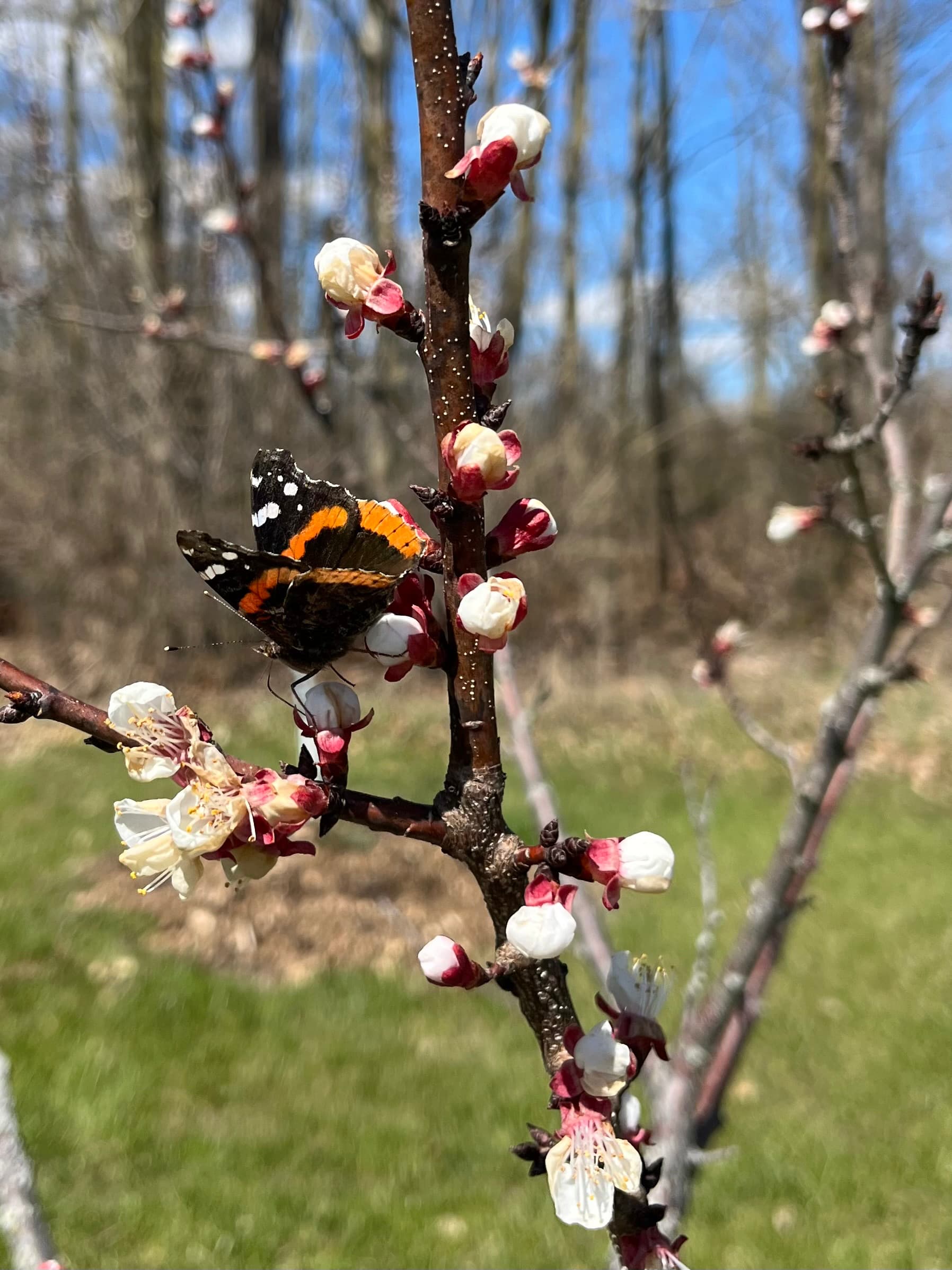 Southern Michigan, and the apricot blossoms are looking good so far. There are dozens of mason bees on the trees right now and several butterflies.