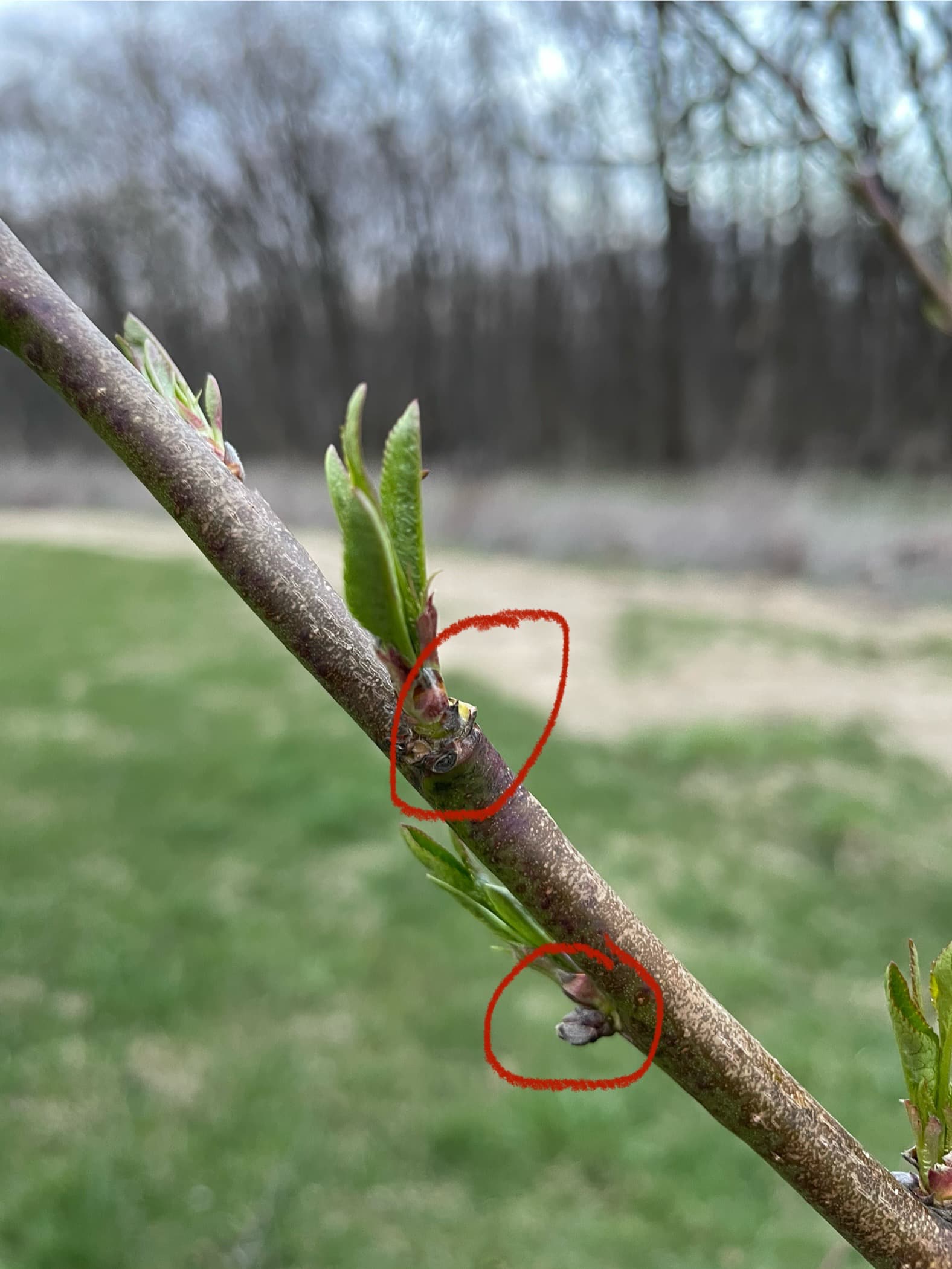 Are the peaches the ones that have leaf bud in the middle surrounded flower bud at each side? If that is the case, my peaches also dropped the flower buds. The leaves are unfurled, but the little buds at the sides dried up. What a bummer! How common is that here in the Midwest in your experience?