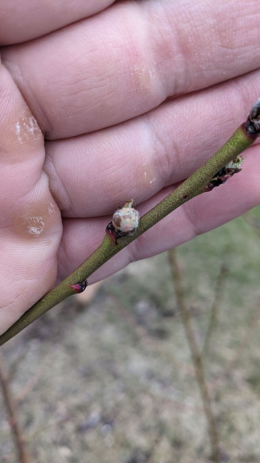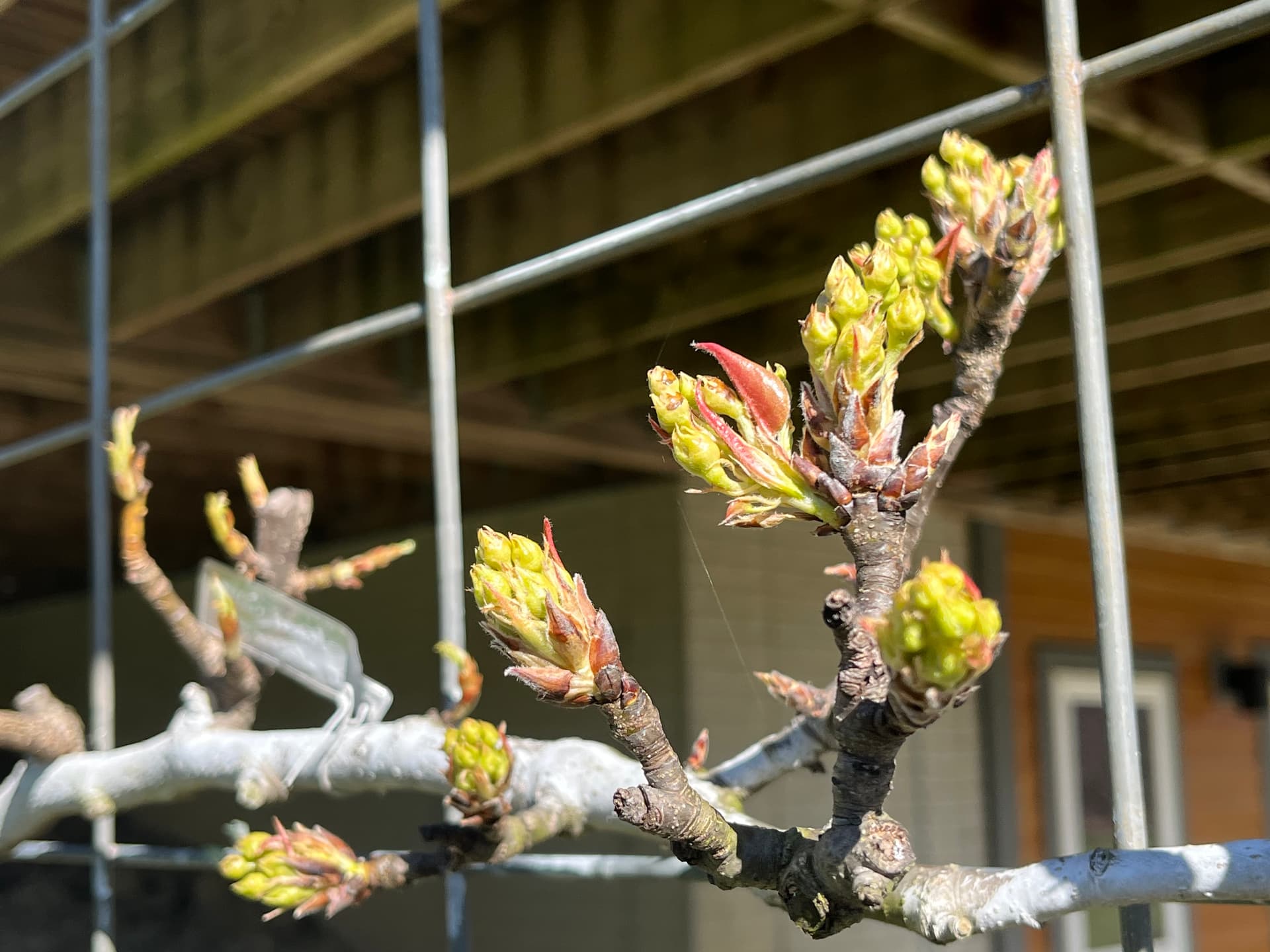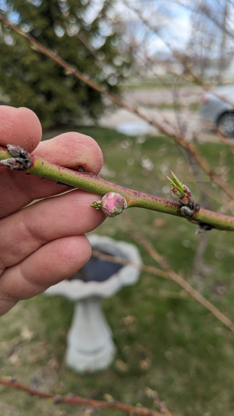 The apricots were blooming today but who knows how this plays out in regards to fruit set. Still haven’t seen any bees around. Peach showing some pink this evening.