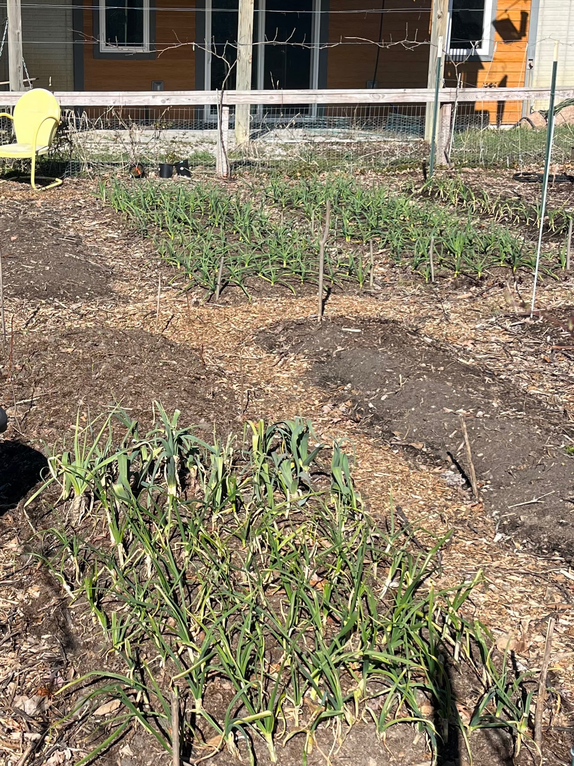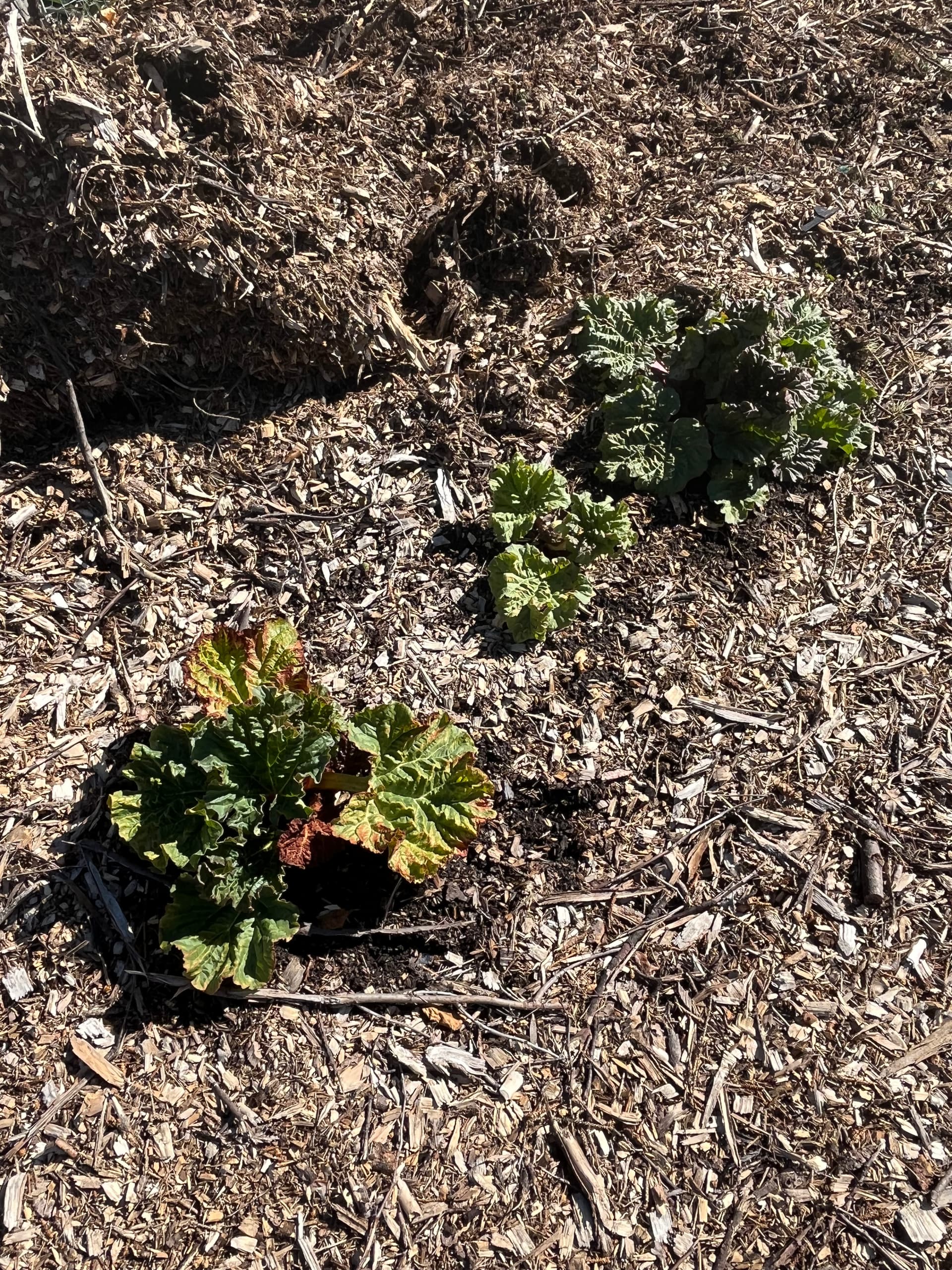 Rhubarb is taking off, garlic is doing well, fall onions survived the winter and new onion sets are starting to take off.