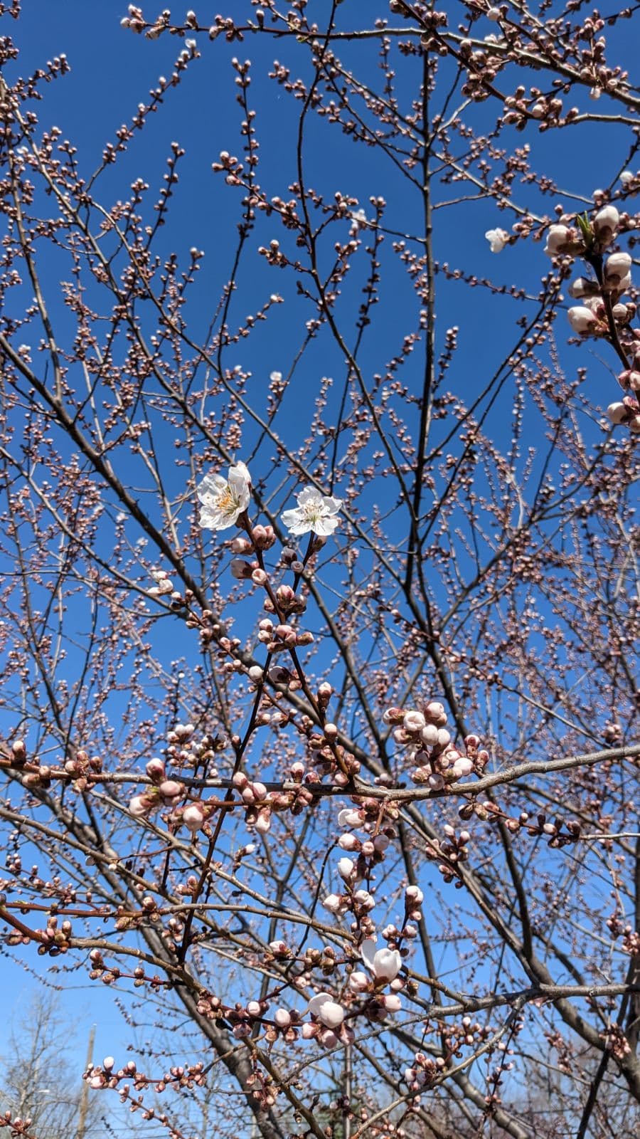 Maybe half dozen apricot blooms out. This means, once again, no apriums, as they always come out a week earlier. Discouraging.