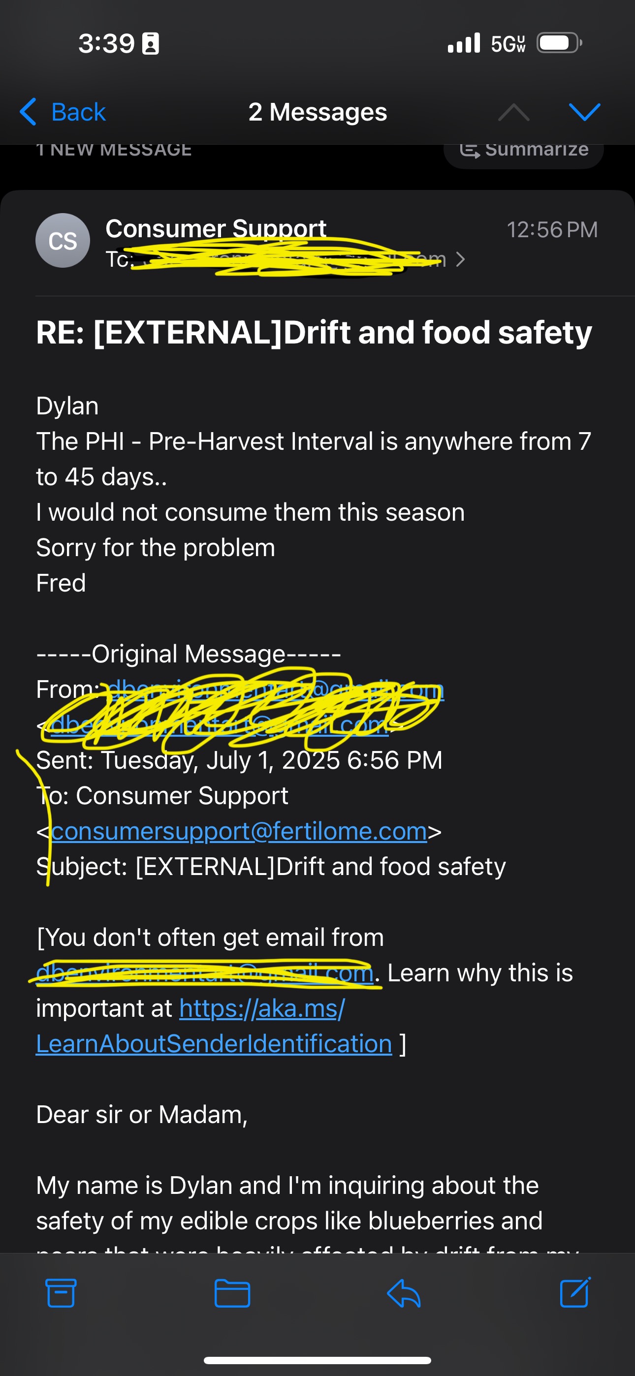As hopefully the last update on the herbicide drift, after eating a handful of blueberries from my bushes, I wondered if they were safe to eat after all the herbicide damage.