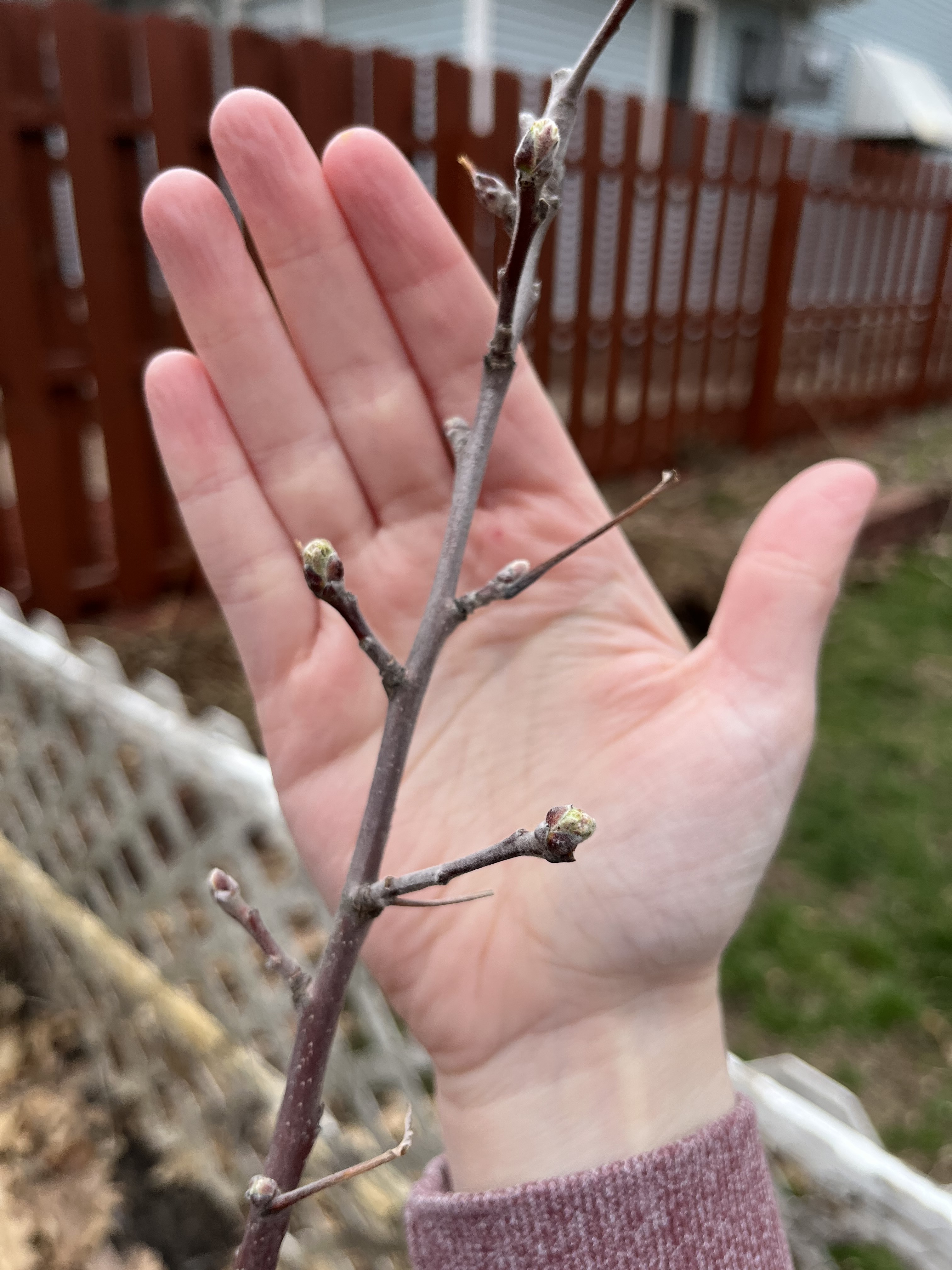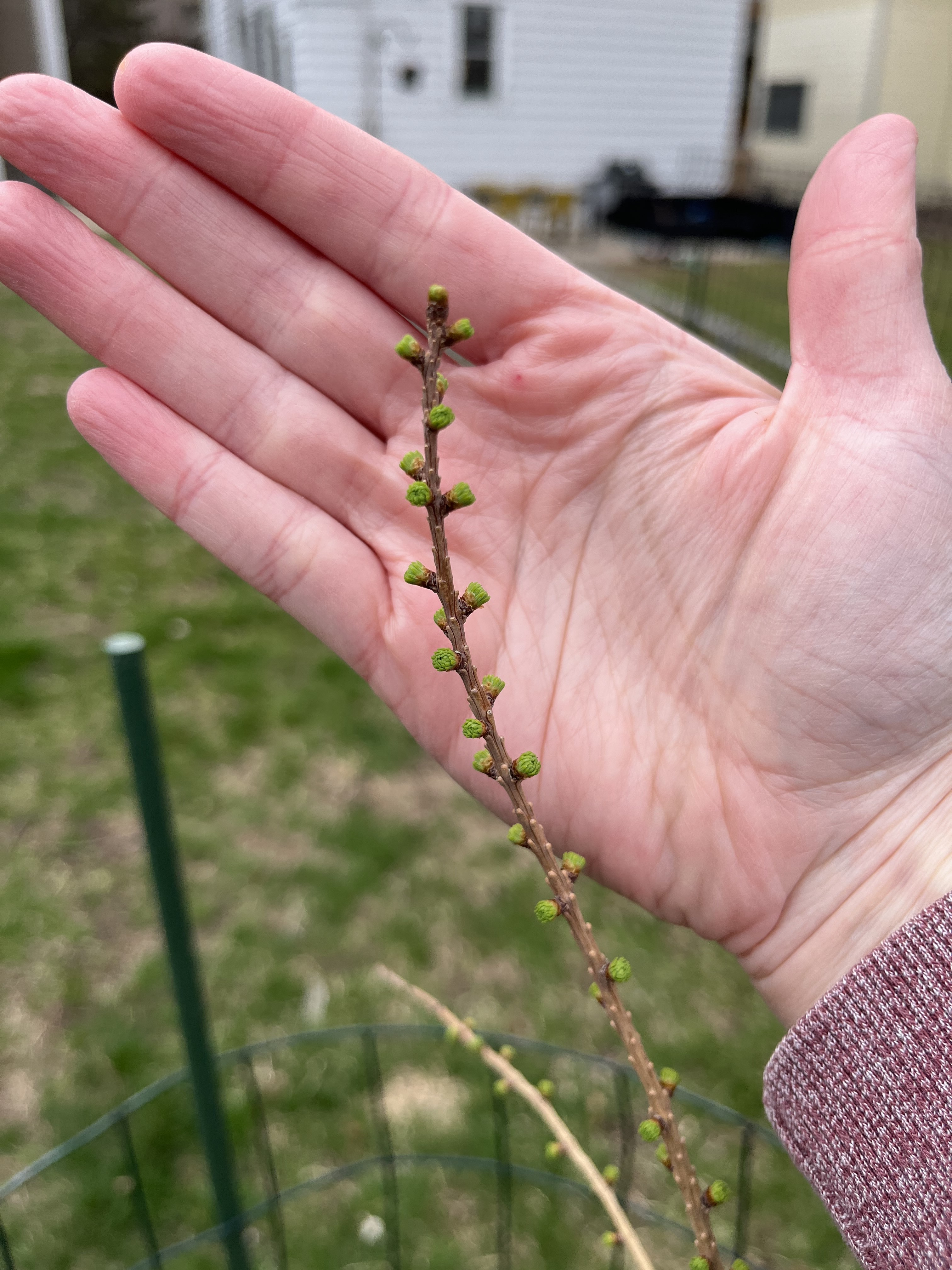 This Milo Gibson apple and tamarack were transplanted last fall, they’re both just starting to wake up.