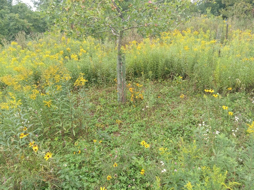 You can kind of see the “ring” under the Dolgo where deer have browsed/beaten down the vegetation while also eating any drops.