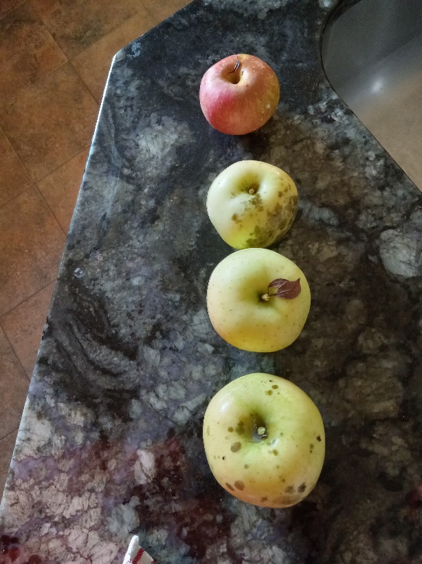 I picked a couple buckets of Smitty’s Seedling today. This was an off year for the tree. Last year it probably had 6-8 bushels. This year maybe 2-3. Many have dropped already, but theres plenty left. I missed this tree with sprays for the most part this year. I did hit a few branches within close proximity to a Zestar. I found zero apple scab. Plenty of sooty blotch/flyspeck however. The fruit is past peak for fresh eating, starting to get soft. When picked September 7-14 at my location and stored in the crisper they’ll stay relatively crispy until late fall. I brix tested a few, all were 15.
