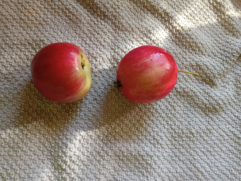 Grabbed a couple wild apples for brix testing. Red apple from VT (grafted to b118 here). Yellow apple growing on its own roots on my property.