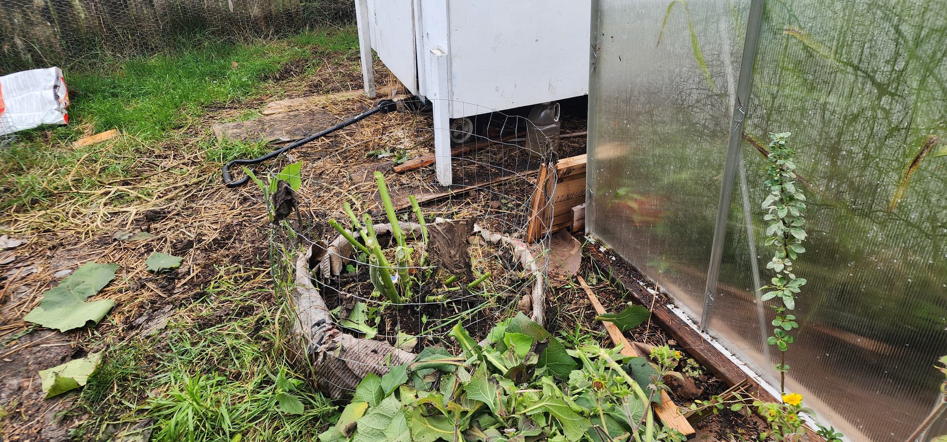 It had the best spot apparently. A makeshift ‘pot’ of 2x4 wire fence, lined with cardboard filled with old potting soil and compost.