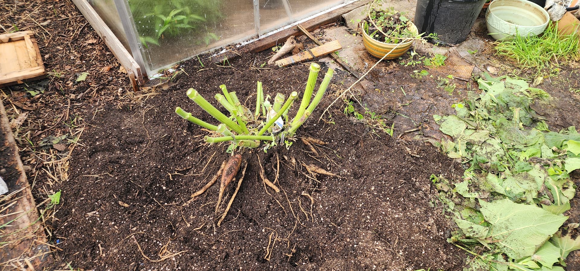 I have a bunch of yacon photos I never got around to posting (besides the harvest).