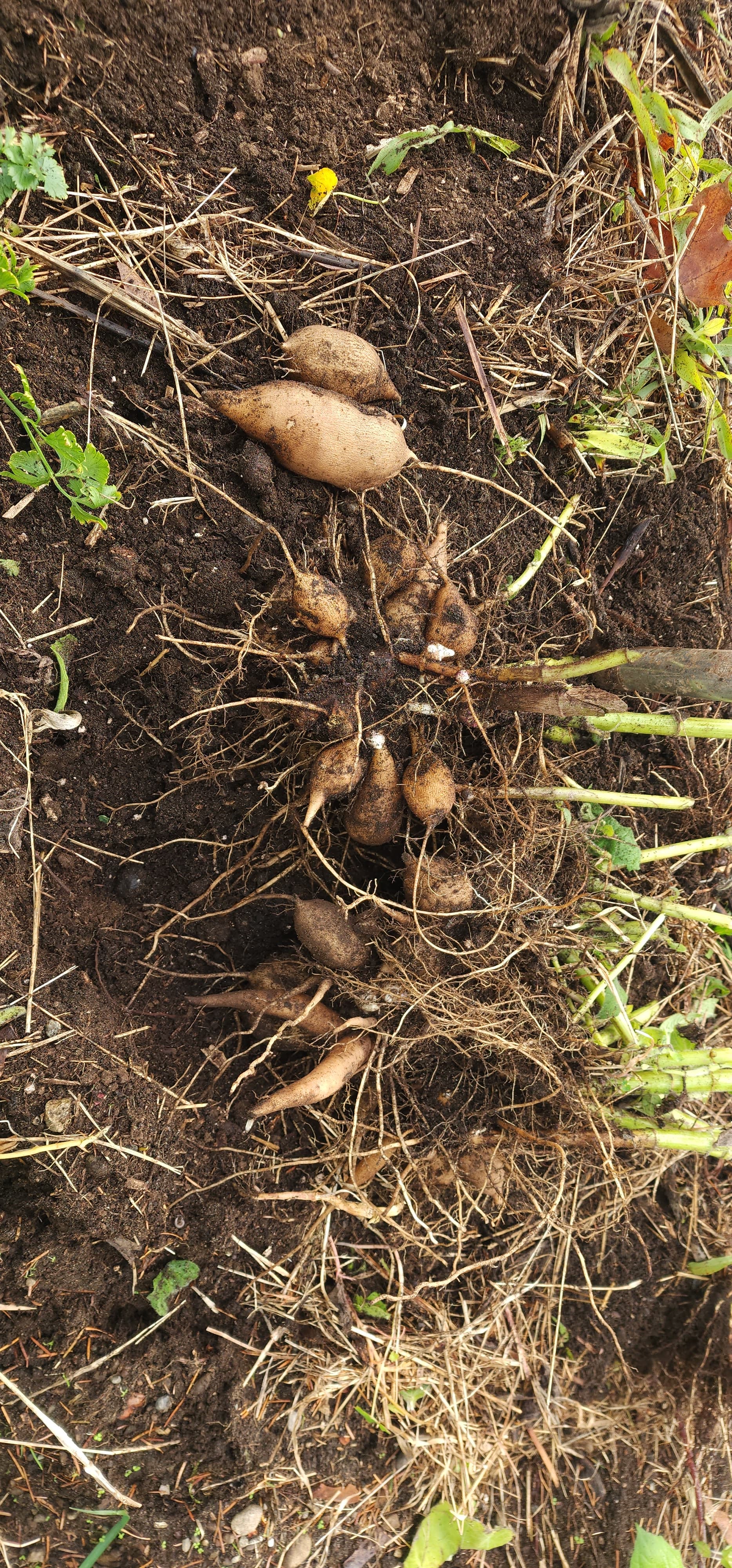 You don’t get many, but most plants will produce enough to cook a couple and save a few for replanting. I figured that any individual that didn’t produce a reasonable number of tubers within a 4-inch pot probably wasn’t going to be super productive in the field. Of course, this method doesn’t let you evaluate tuber size, but flavor and tuber shape were higher selection priorities for me when I did this.