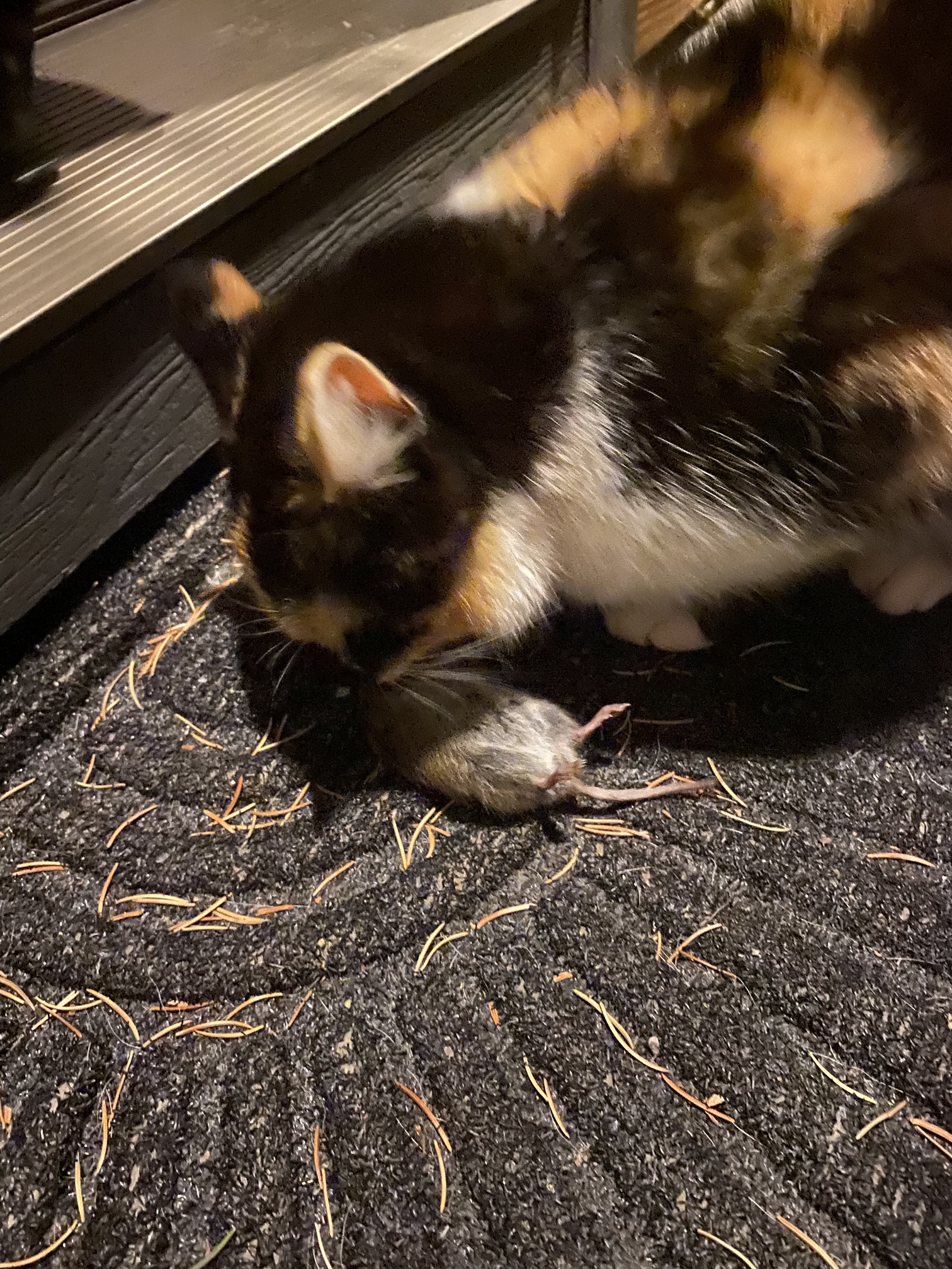 –Twelve black plastic mouse traps baited with peanut butter and placed next to a hole. I ended up covering them with clear plastic plant water bowls because I was worried about my animals