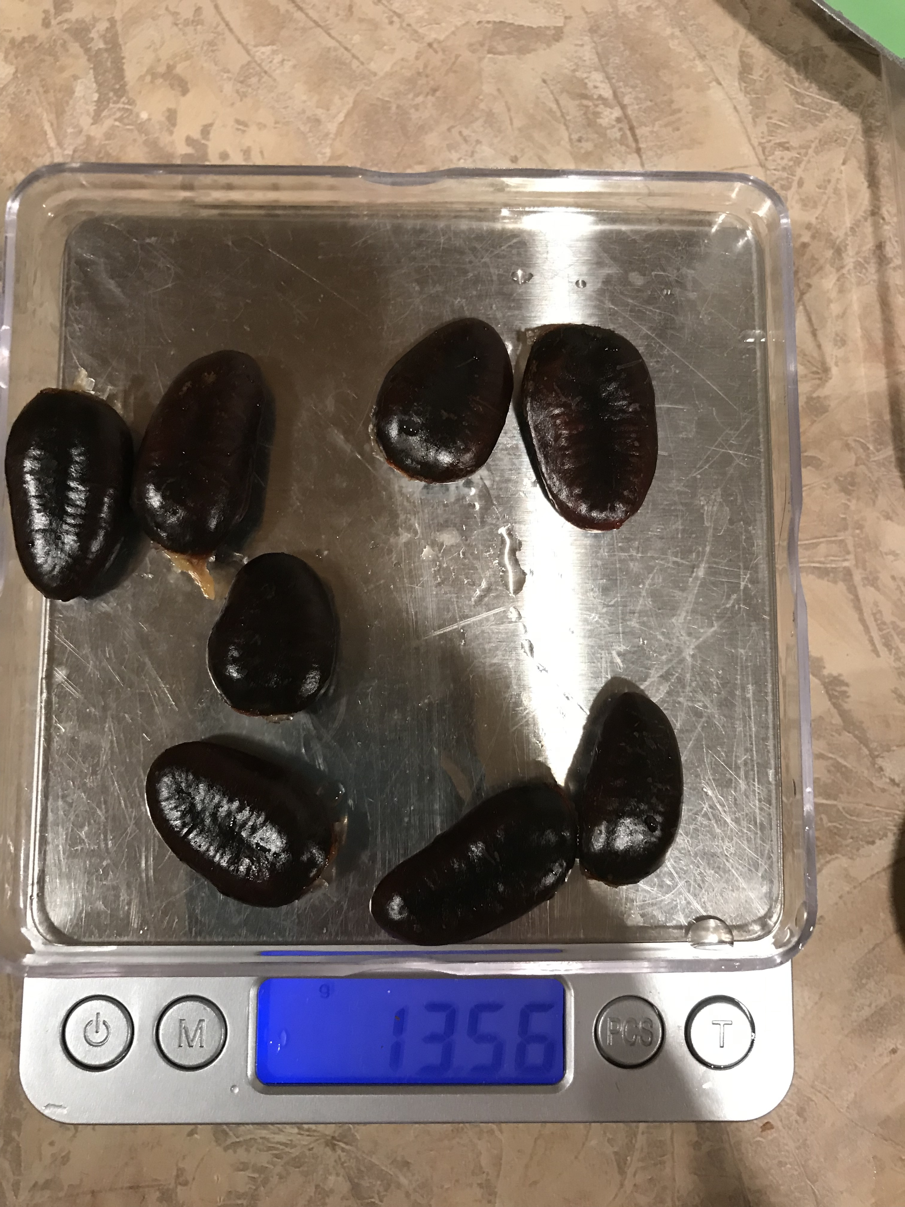 Round 2 of wild foraged fruit. The fruit is very mild and pleasant with hints of of fruity taste ranging from coconut, Concord grape, to a soda I like from Brazil called “Guarana”. The flesh to seed ratio is around 7-10%.