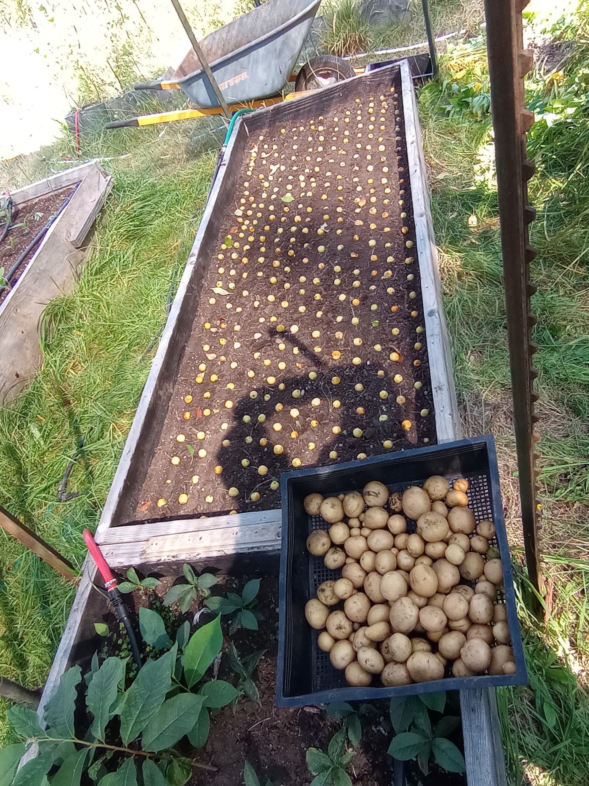 reminds me i need to harvest mine all growing in 20 gal. pots. got russian banana, norland reds and caribou russets.