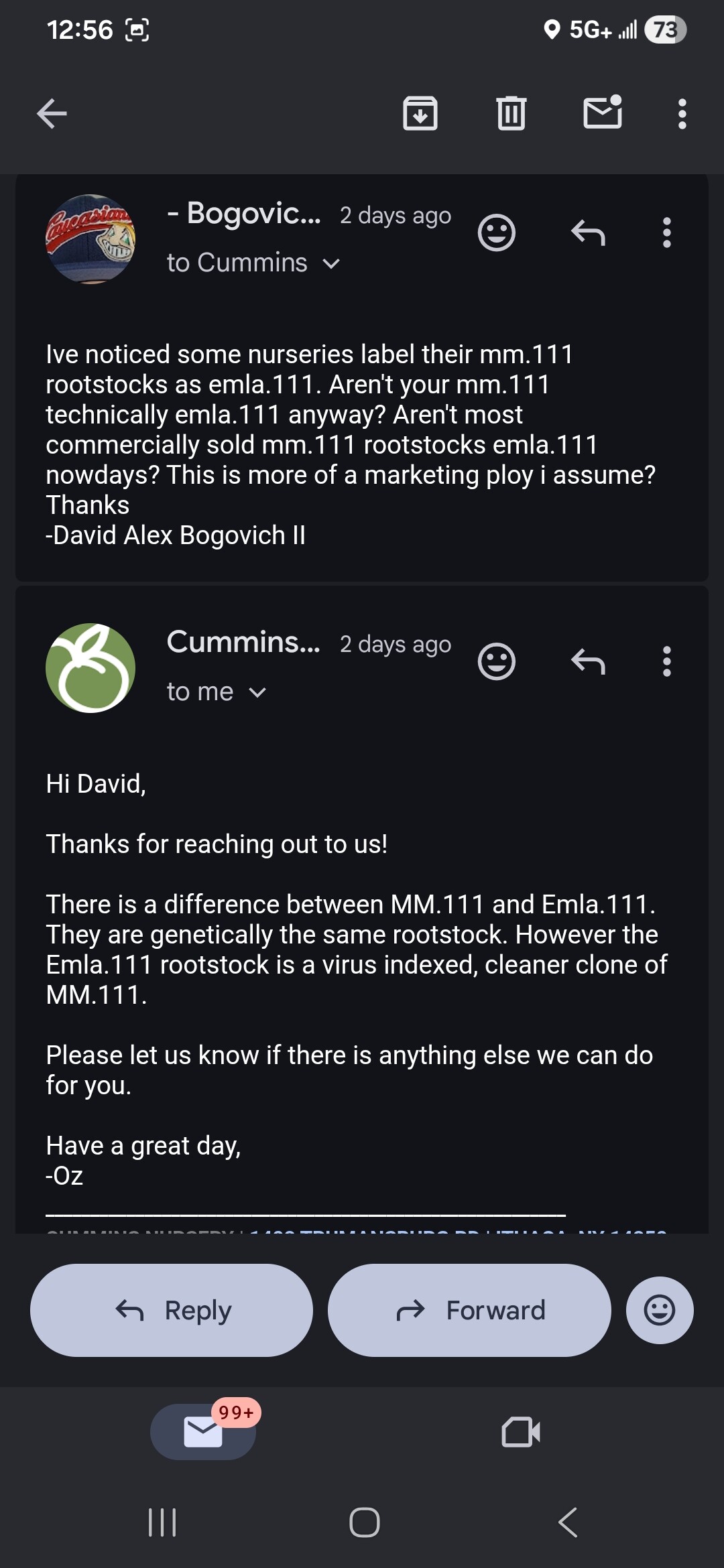This is what i was intially told but when i asked cummins if vendors lableing mm.111 rootstock as emla.111 was a marketing… because they are the same. They stated that there was a difference between the two rootstocks. I appreciate their transparency because they dont even sell emla.111… but this created confusion for me to be honest.