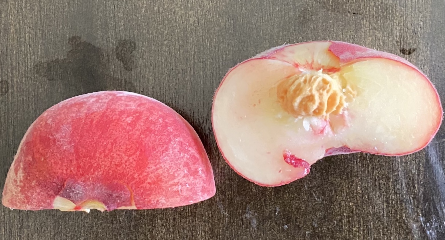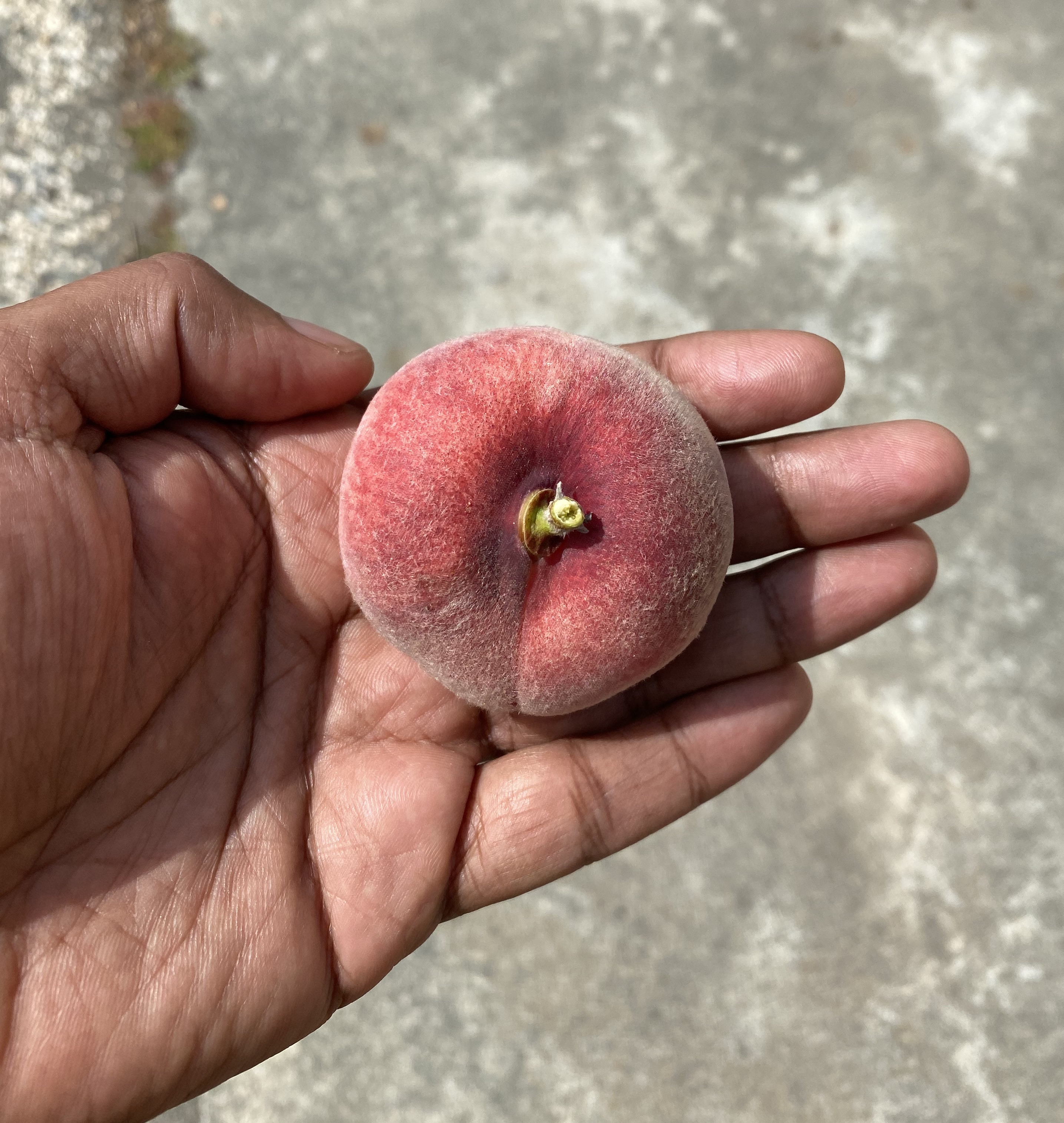 I was hunting for some early stone fruits and I planted Sauzee Swirl peach (donut white peach) last winter. Ideally, I should have clipped all the fruits but I let one ripen to sample the flavor. It was ready at the exact time listed on DWN’s harvest chart, May 13. It was aromatic and very sweet with typical white peach flavor.