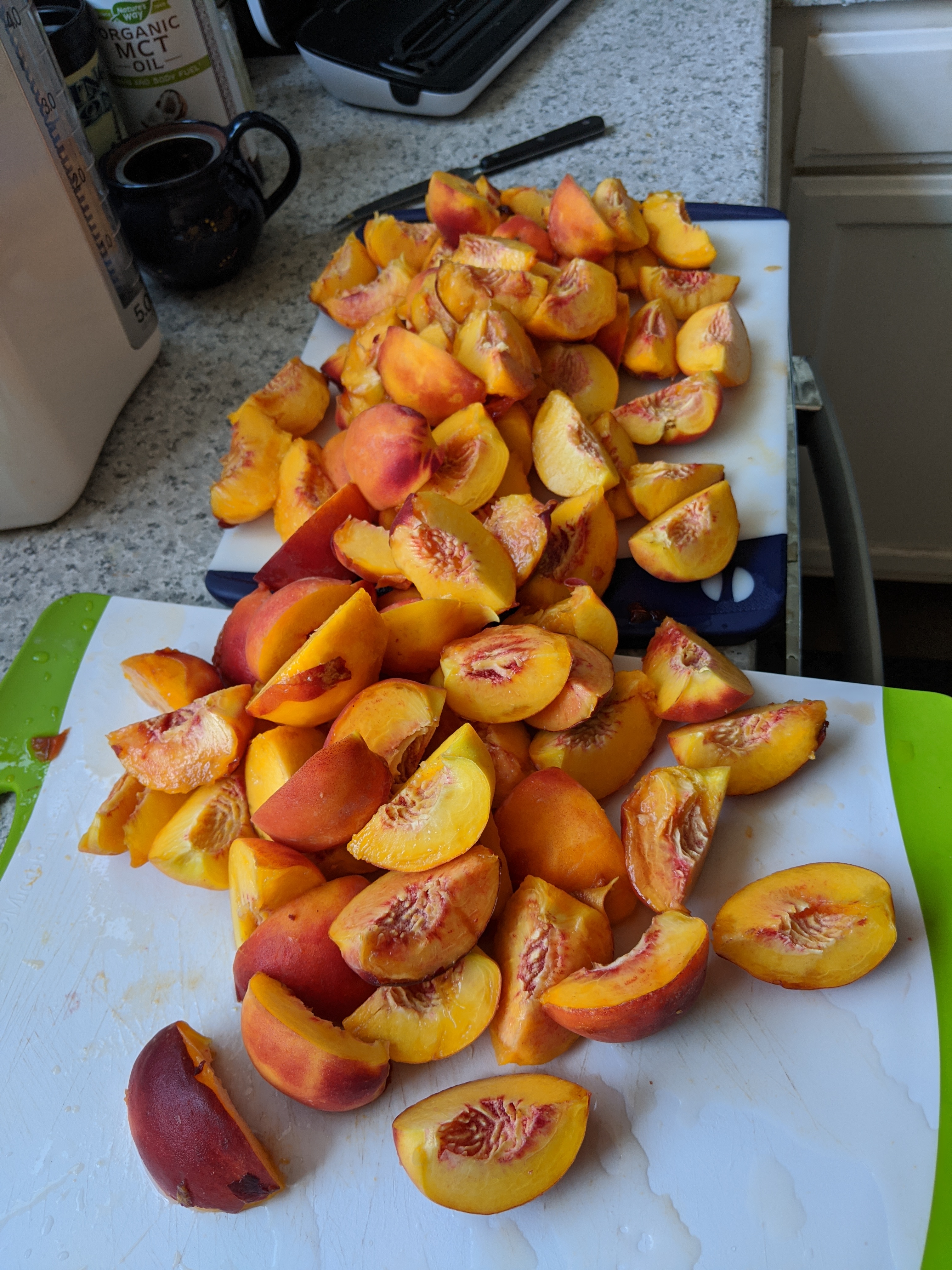 Dealing with dozens of Honey Babe peaches, with about 50 more to go: