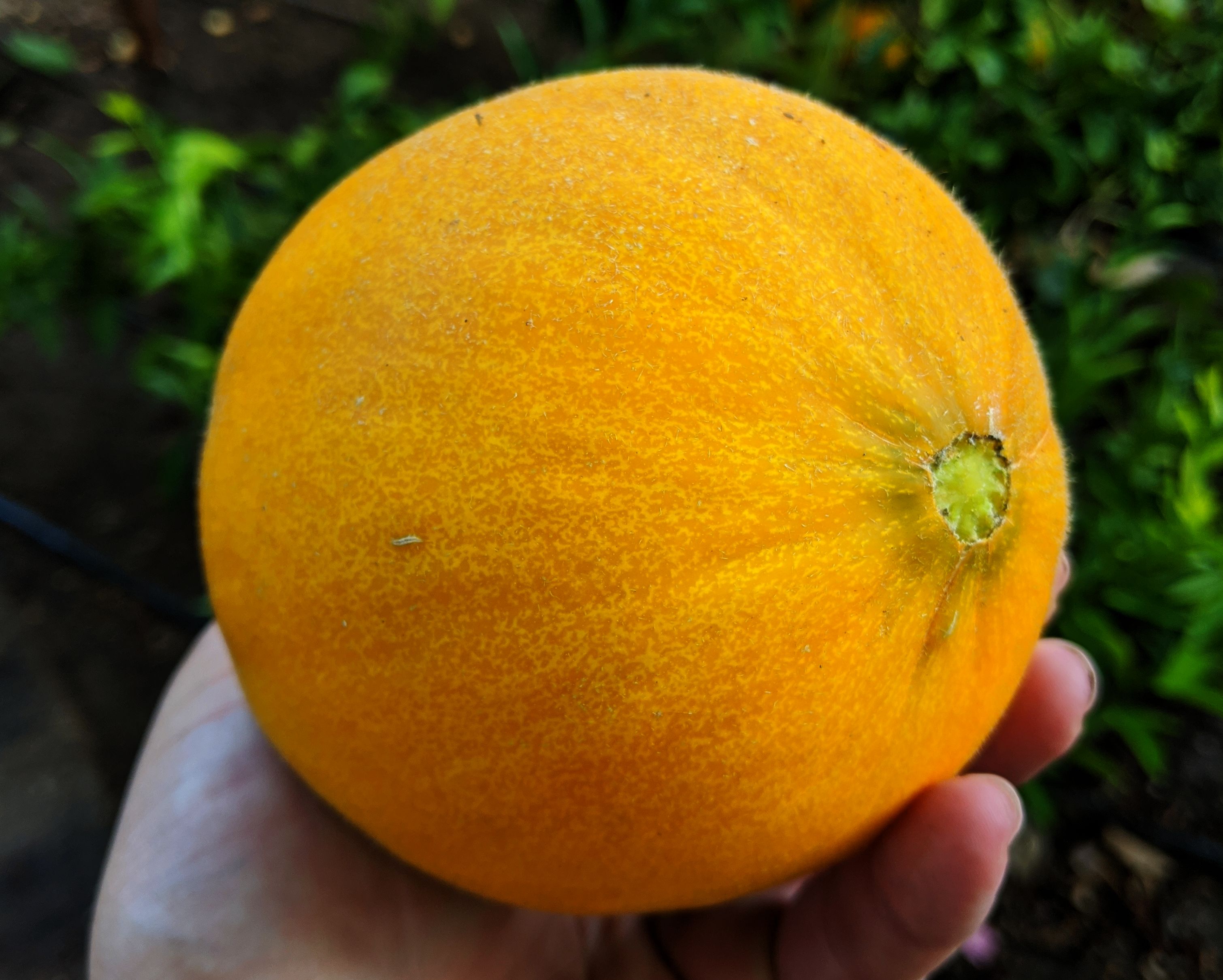Been doing some research on this variety, and it appears that people who know this melon from Russia and adjoining areas claim that the one we are growing in the USA is not the same variety. But the descriptions provided on reviews at rareseeds.com perfectly match what I grew. I got the seeds from a neighbor, who got them from a small seed company in Oregon. Well, getting muskmelons to sweeten up in my garden has been a real struggle, and this little melon did great so I’ll continue with it.
