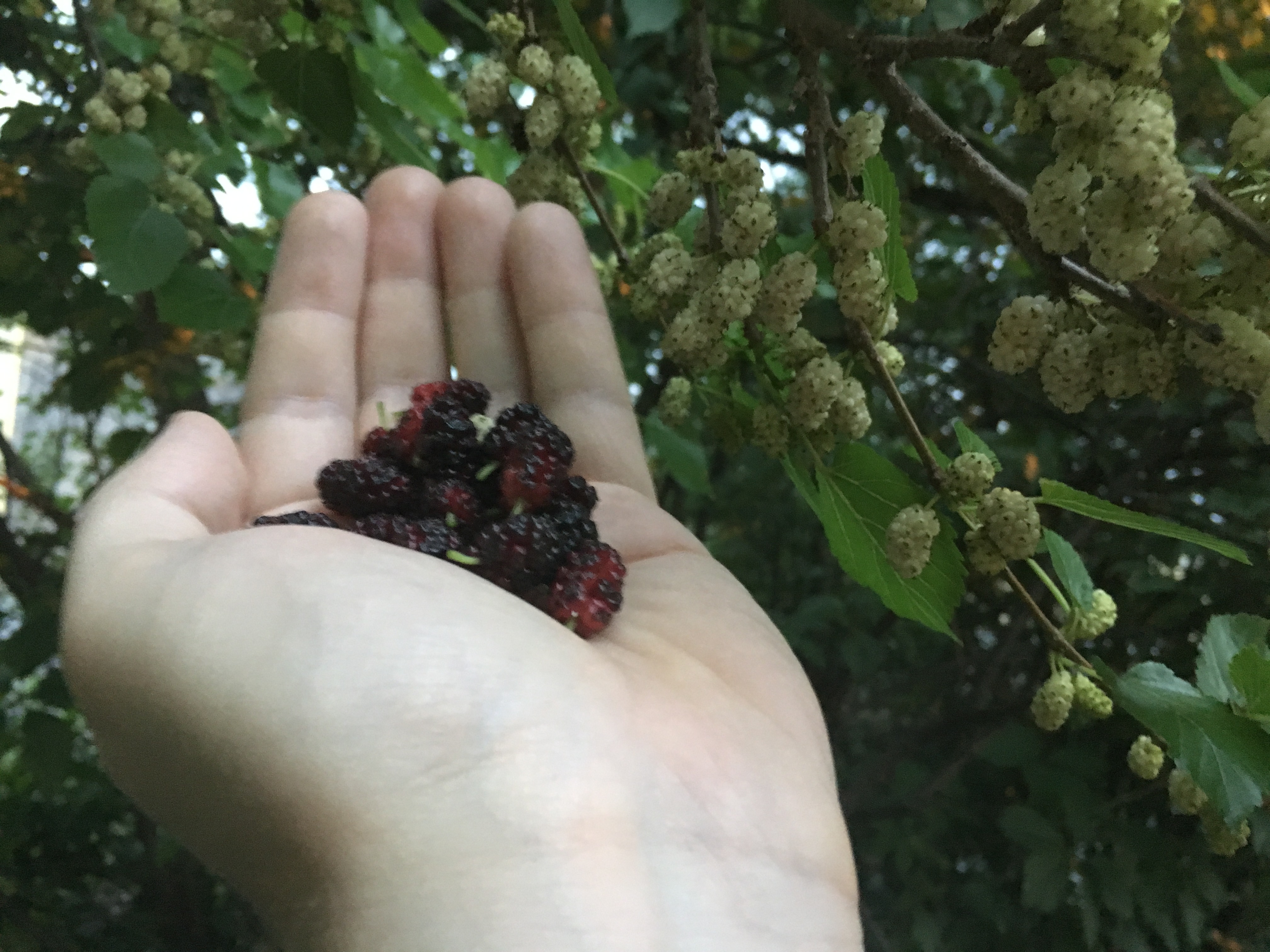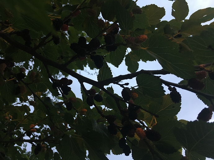 I also found several Juneberries loaded with fruit as well as some mulberries absolutely LOADED!!! I had several handfuls until I could eat no more. Now the fibrous seeds are gurgling in my stomach. I expect to stay regular this week.