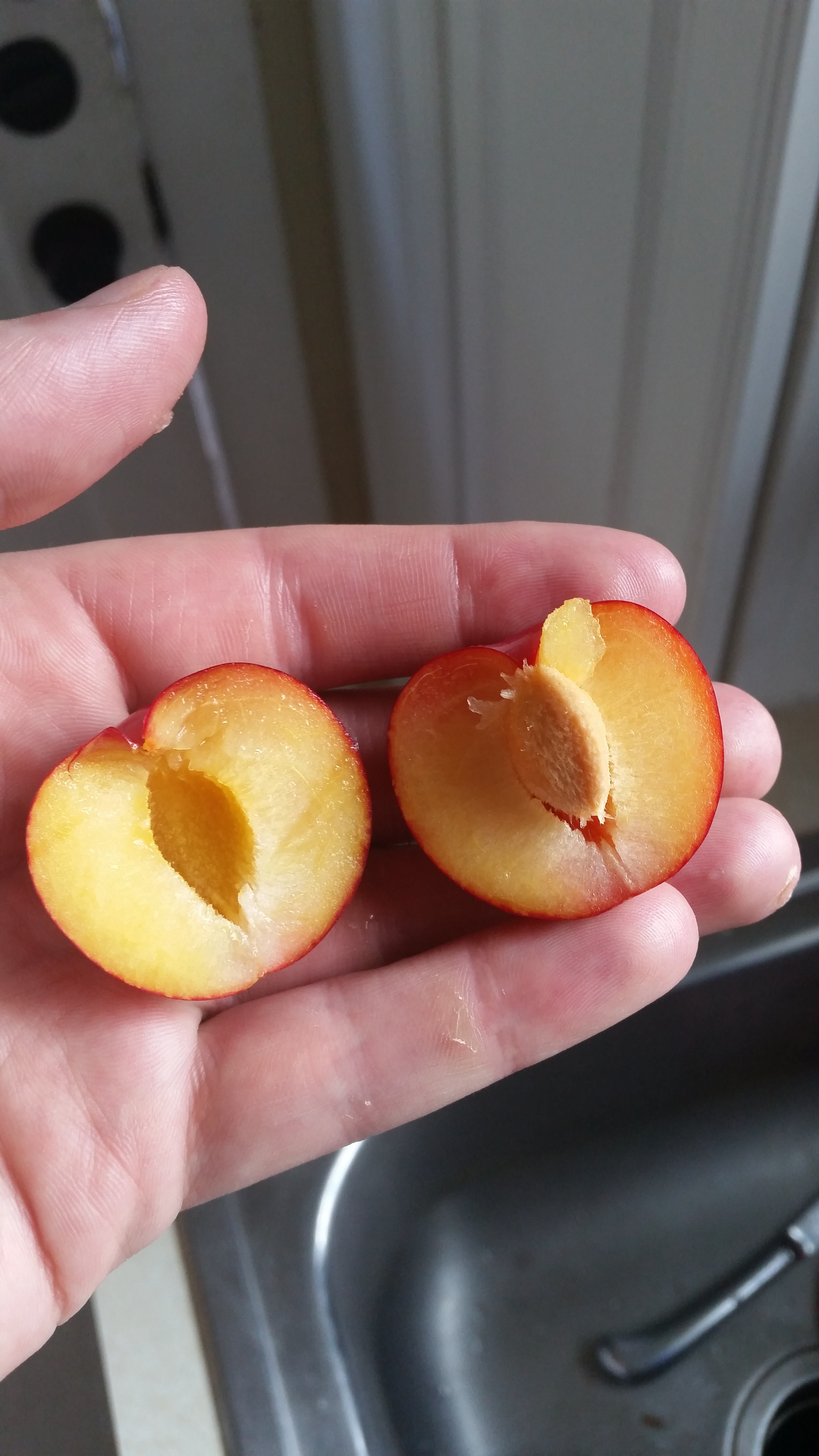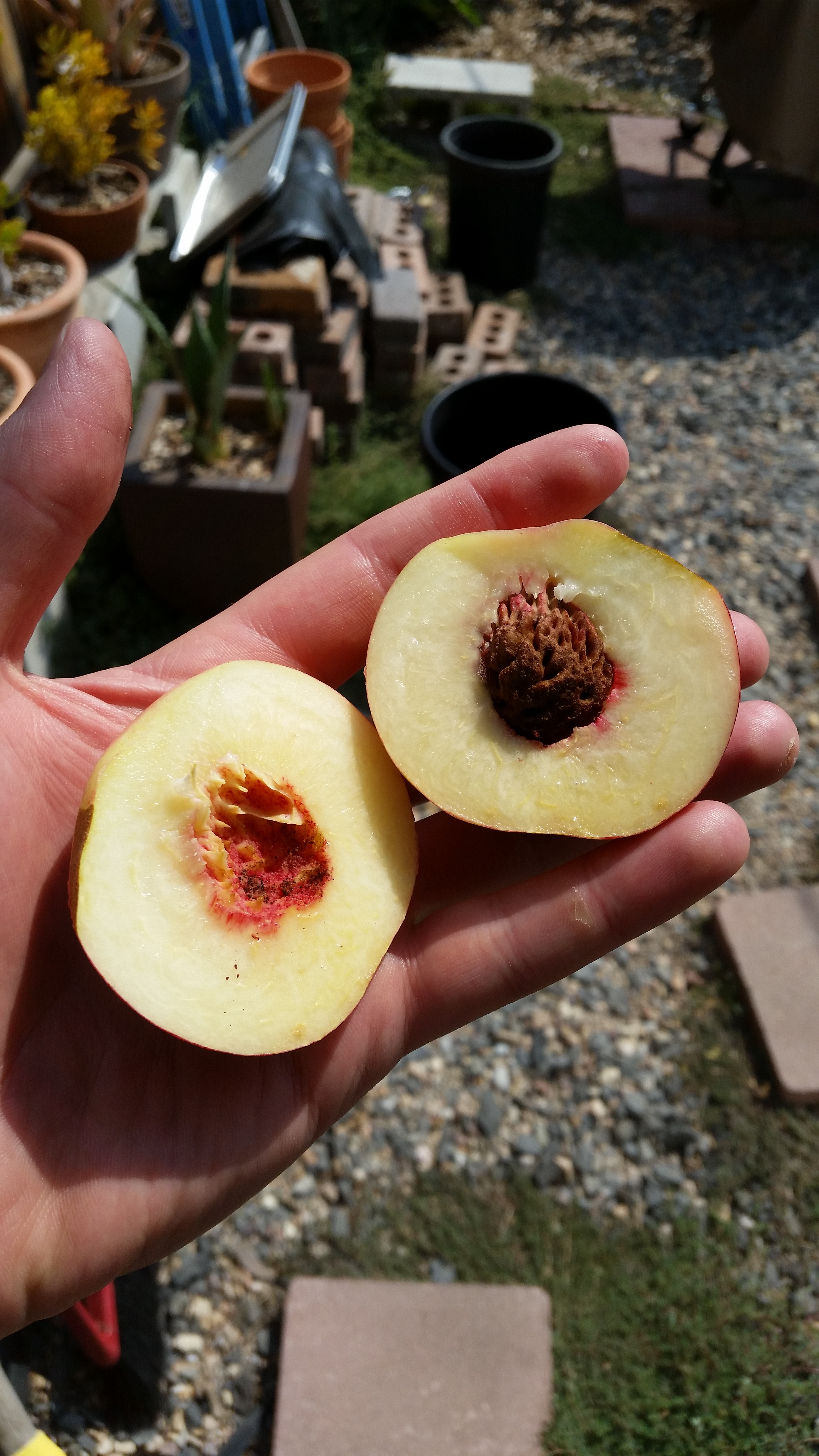 Toka Plum and Artic Glo Nectarine. 21 brix on the toka, very good flavor, but mealy at the pit, which is unpleasant and unfortunetly consistent. 17 brix on the nectarine, but it wasn’t quite ripe, but I couldn’t help but pick one due to curiosity. The arctic glo reminds me a lot of the indian free peach, very acidic and needs high brix to balance this. Exceptional flavor, and I imagine if I get the brix closer to 20 it will be an amazing peice of fruit. At 17 it is a bit tart. I also picked a flavor king pluot yesterday even though it was still very crunchy. Even at that stage it was the best peice of fruit I have had all year…