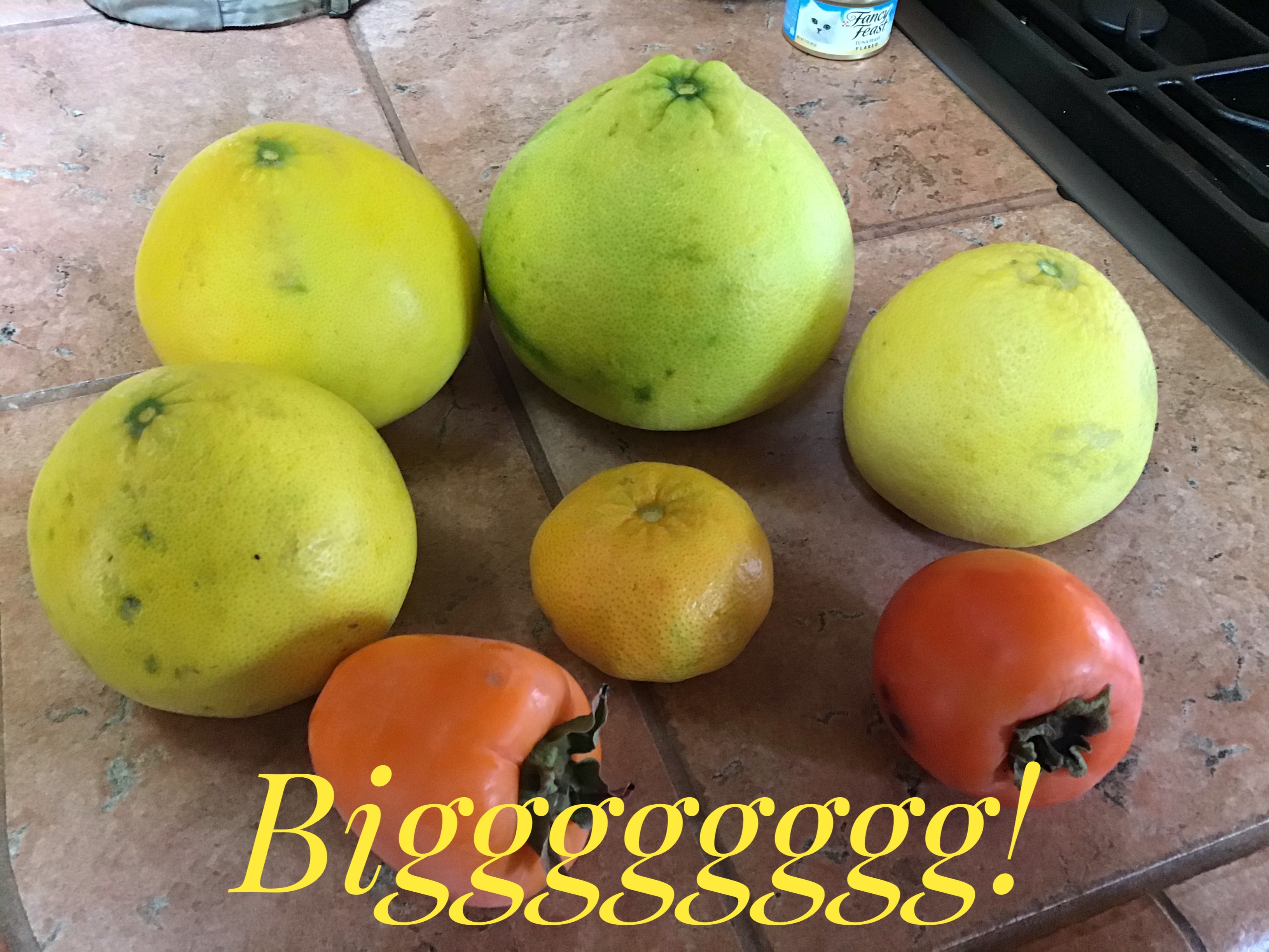 Here is part of my diet, homegrown mandarins, oranges, pomelo, paw paw, persimmons, pears, plums, pluots, figs, bunches of good garlic.