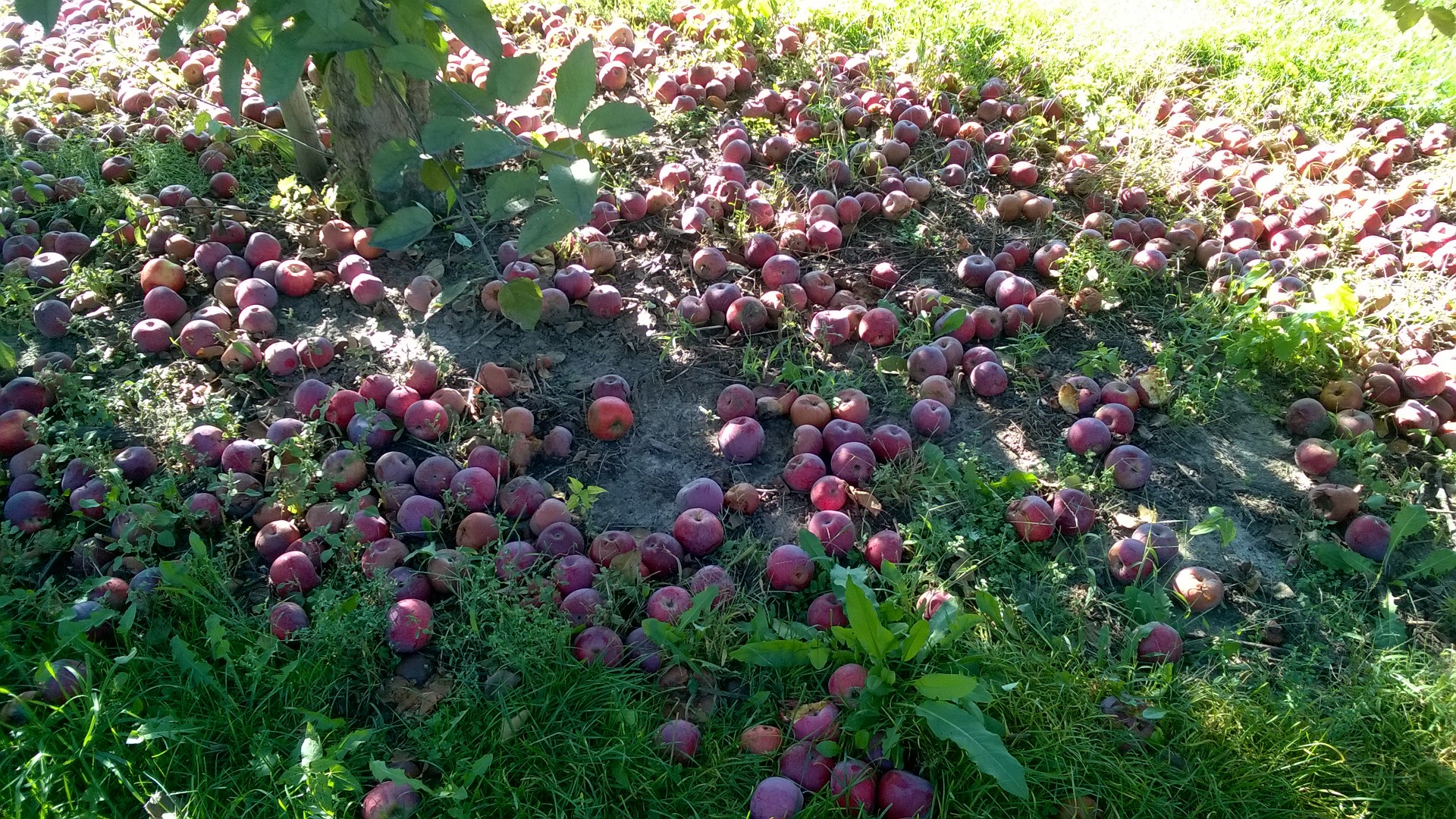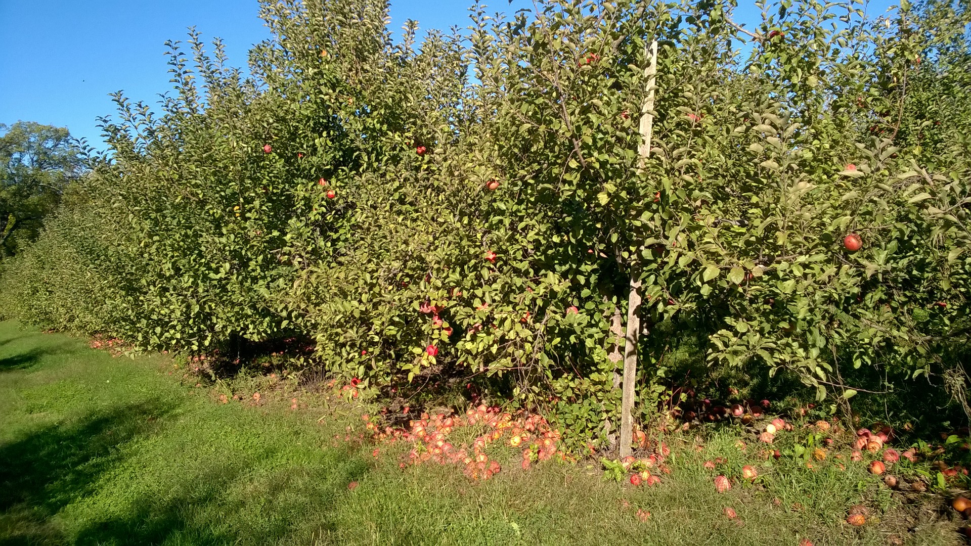 Here are several pictures from the farm. The apples on the first picture I believe are Fuji. On the second and third pictures are Jonathan apples. They were almost black and all overripe.