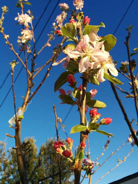 Just love this time of year. Frankenstein apple tree is in full bloom. Anna, Red Fuji, Dorsett Golden all flowering on this tree.