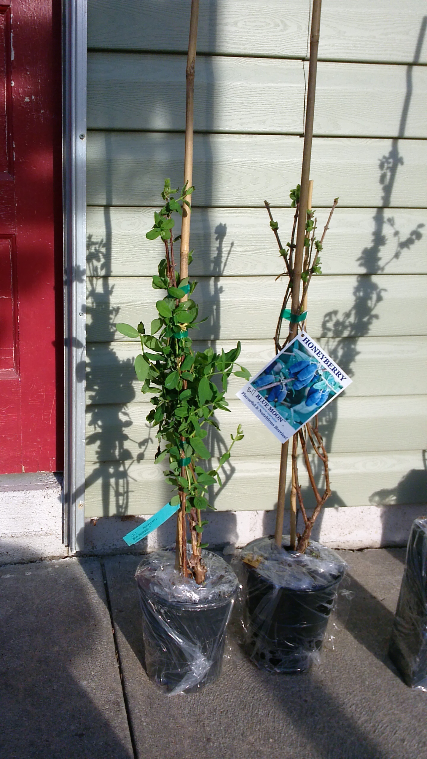 Here are Blue moon and Blue Hokkaido honeyberries. One bush have flowers.