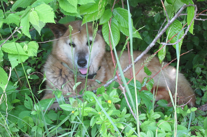 He is a dog my wife rescued from the pound about 12 years ago. This was years before we even met, but he’s lived here on the farm all those years. As far as what breed, he looks mostly German Shepherd, maybe some Chow, and maybe has a little bit of wolf or fox in him. I say wolf or fox, because he’s kinda skittish, and doesn’t respond to commands very well. He will follow my wife around wherever she goes, but rarely goes with me. He also doesn’t like loud noises like thunder or gunfire, and when we have lightning, he scrambles for cover as well.