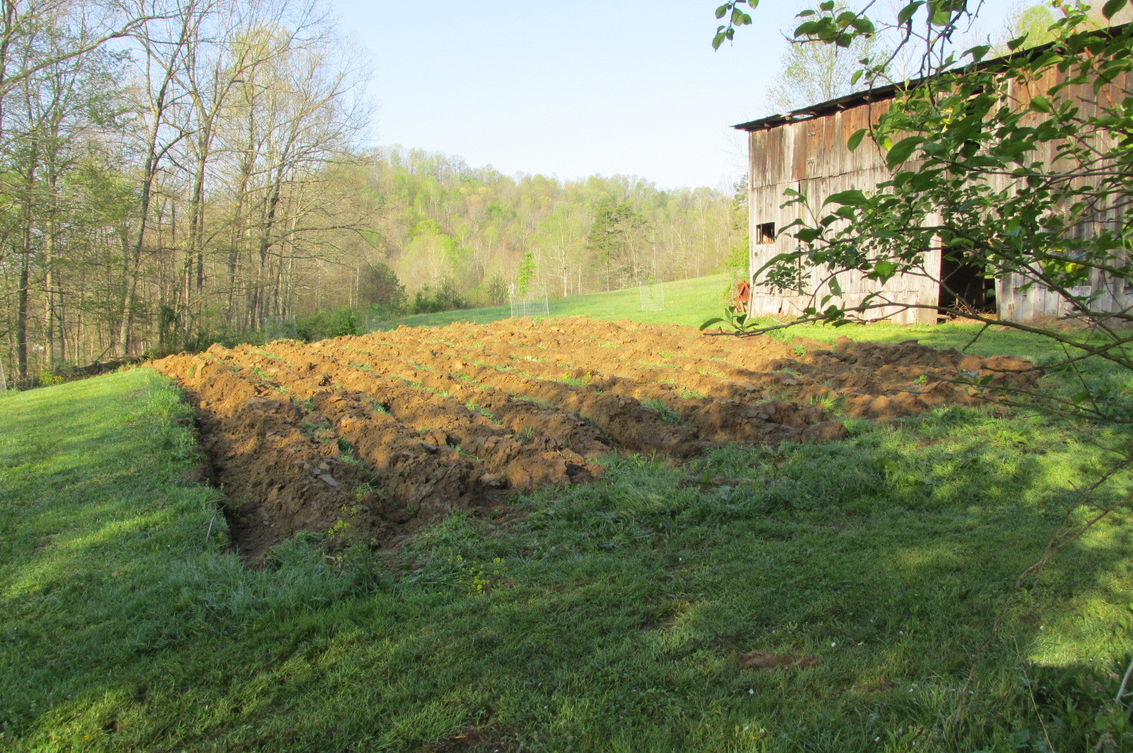 Newly turned earth down in the farm orchard