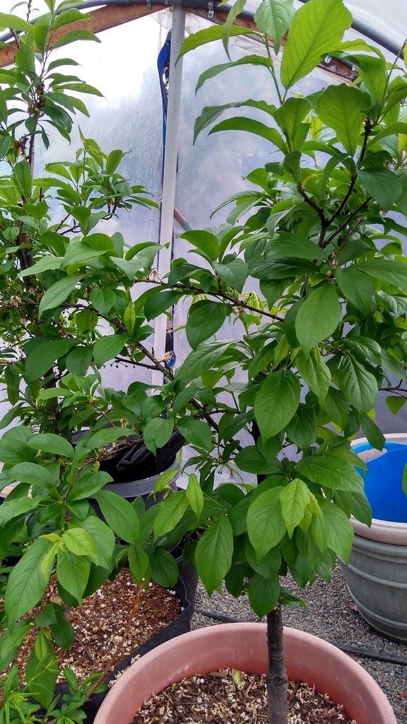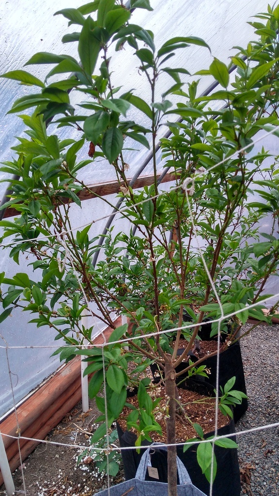 Most of the trees in containers are third leaf and should fruit this year.The other plants have already fruited a little before.Brady