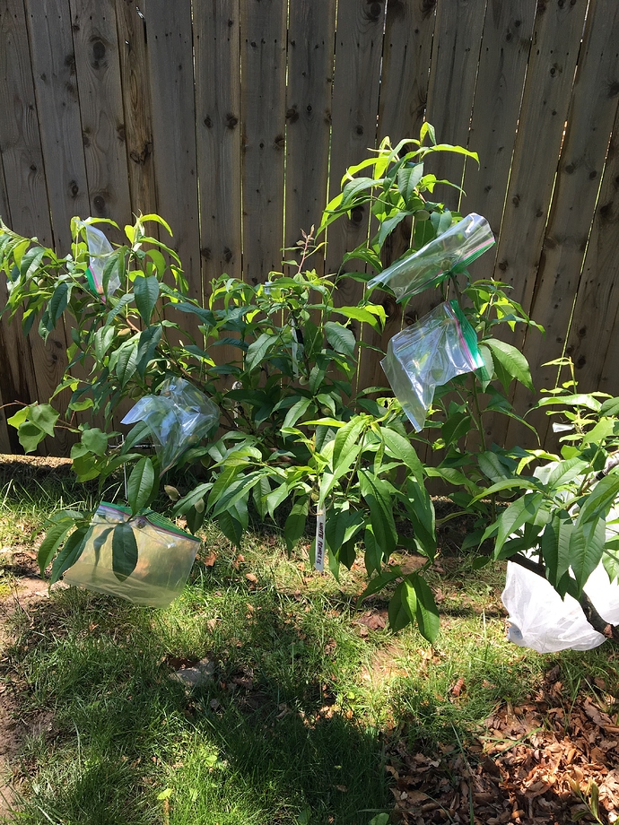 I put up a net on two large branches of the peach tree. Hopefully this won’t stunt the growth/spreading out of branches. Couldn’t cover the entire tree. I figured I’ll just have to share/fight with squirrels for rest. At least this will give us 30 or so good peaches.