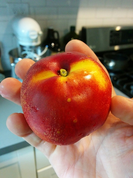A little too early for this Desert Delight nectarine but couldn’t resist. I saw a few birds hovering over the tree this morning and was too lazy to start getting out the bird tape so I just picked it and happily ate it