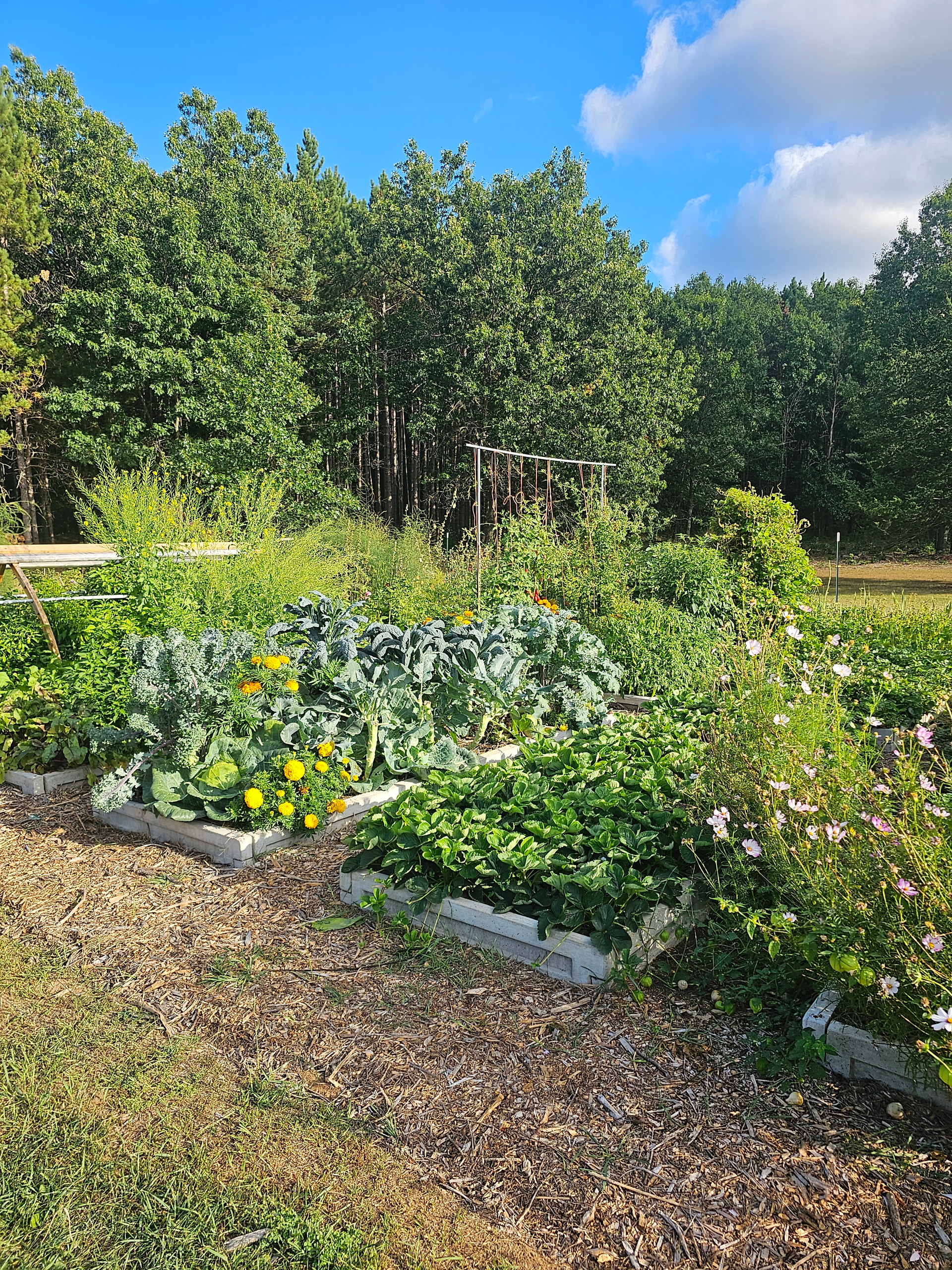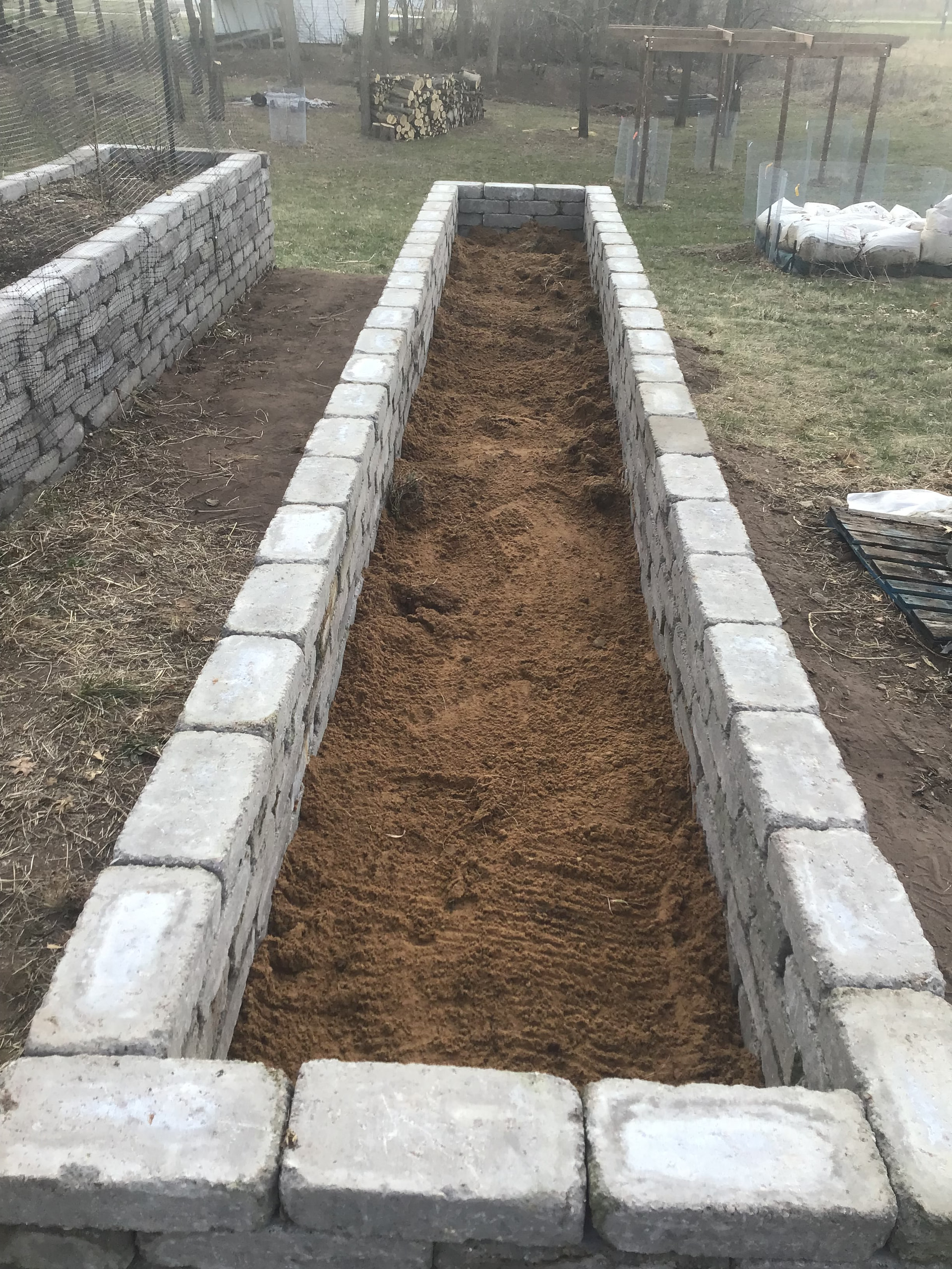 Cost was less than metal containers (if you can find the blocks cheap) and I like that they are somewhat “modular" and if you decide you want to change the size or shape of a given bed you can add or remove blocks easily to do it without having to buy or build a whole new bed.