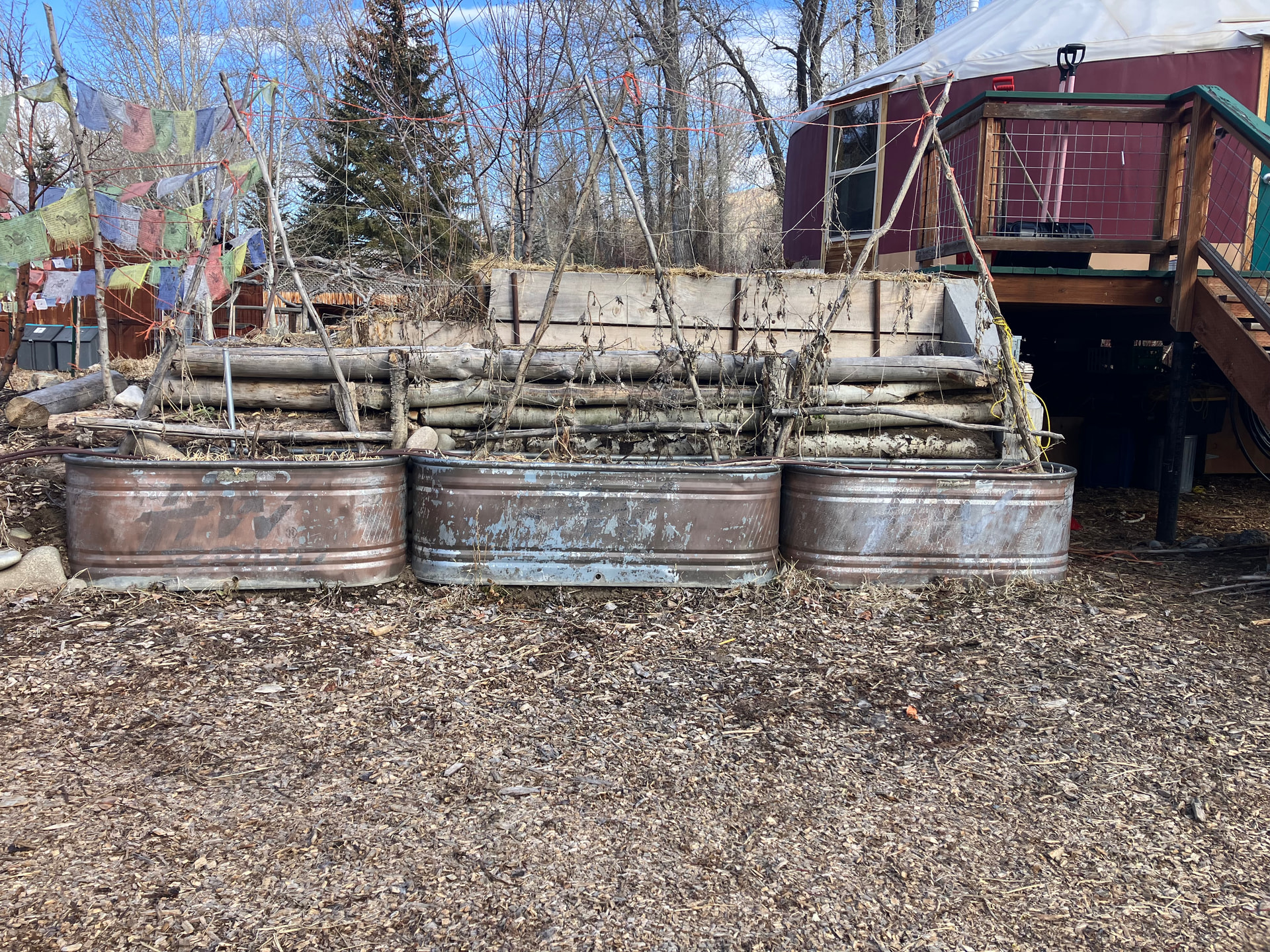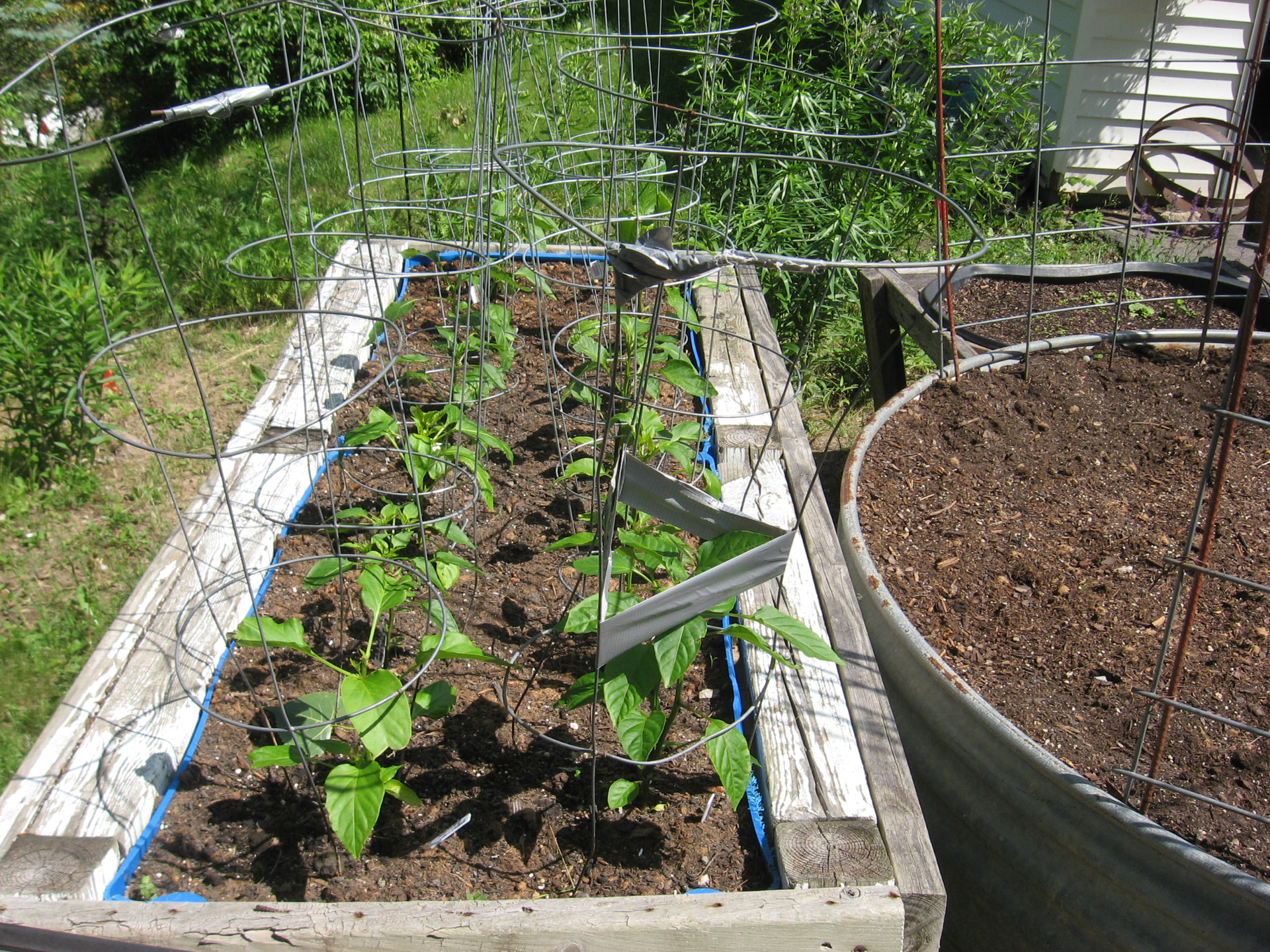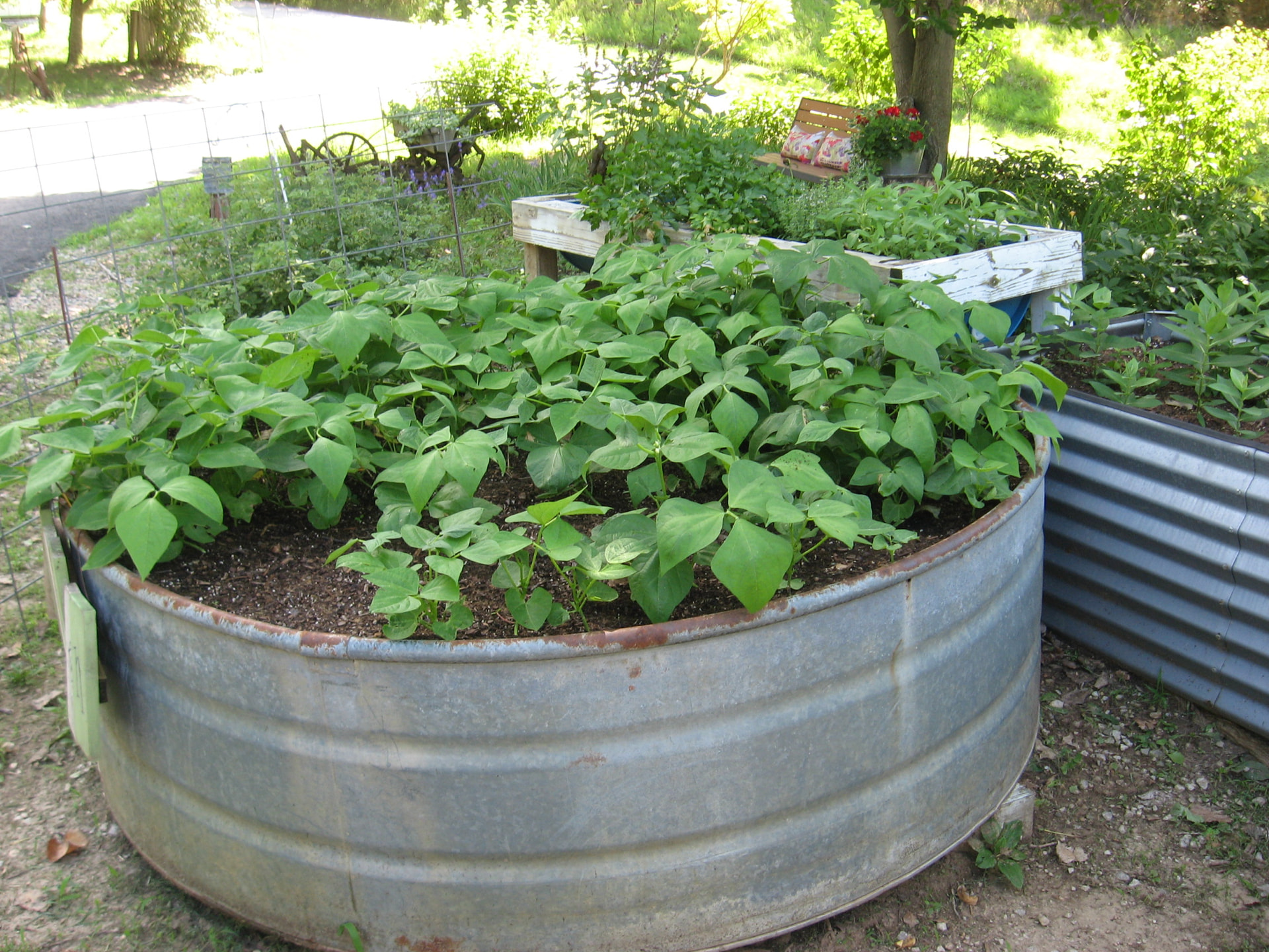I also obtained a couple of plastic 55 gallon drums, split then lengthwise and used some 4X4s to build a frame. Plastic 2 liter pop bottles for bottom filler and then soilless mix as the growing medium which gets replenished every season. The painted 4X4 frame shows no wear after 5 years. The plastic barrels will last longer than we will.