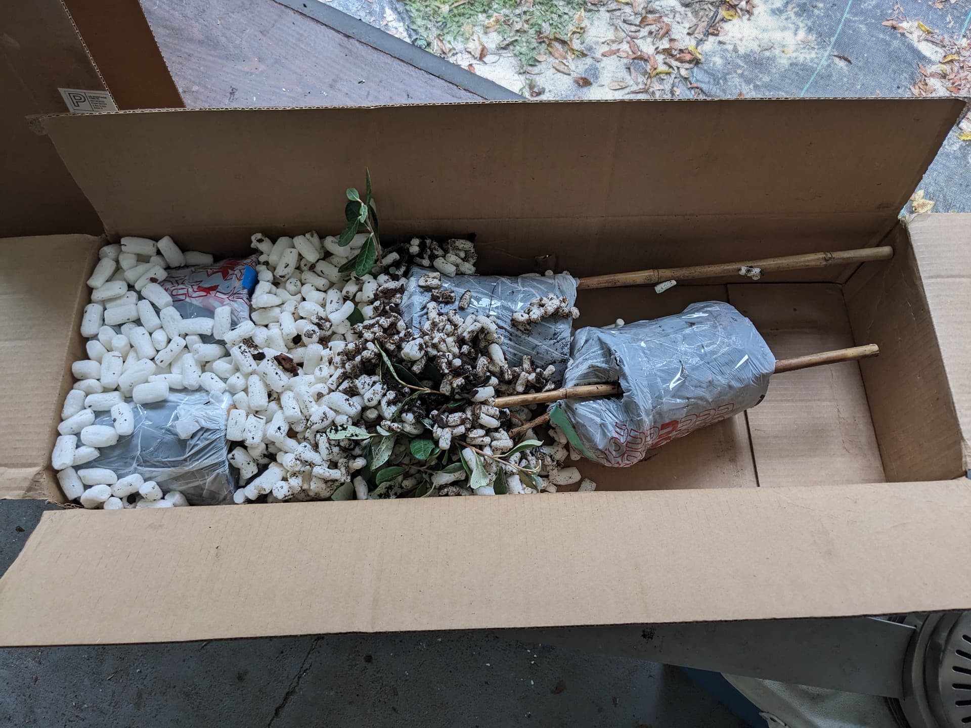 This was my Restoring Eden order… the bamboo stake slipped through the drain holes on two of the pots, letting the plants slide into each other. This happened 2 years in a row. One Green World is more serious about their packaging. However, Restoring Eden offered to replace the broken plant each time, so good on their customer service.